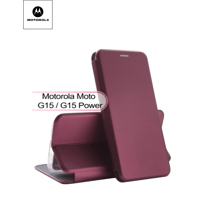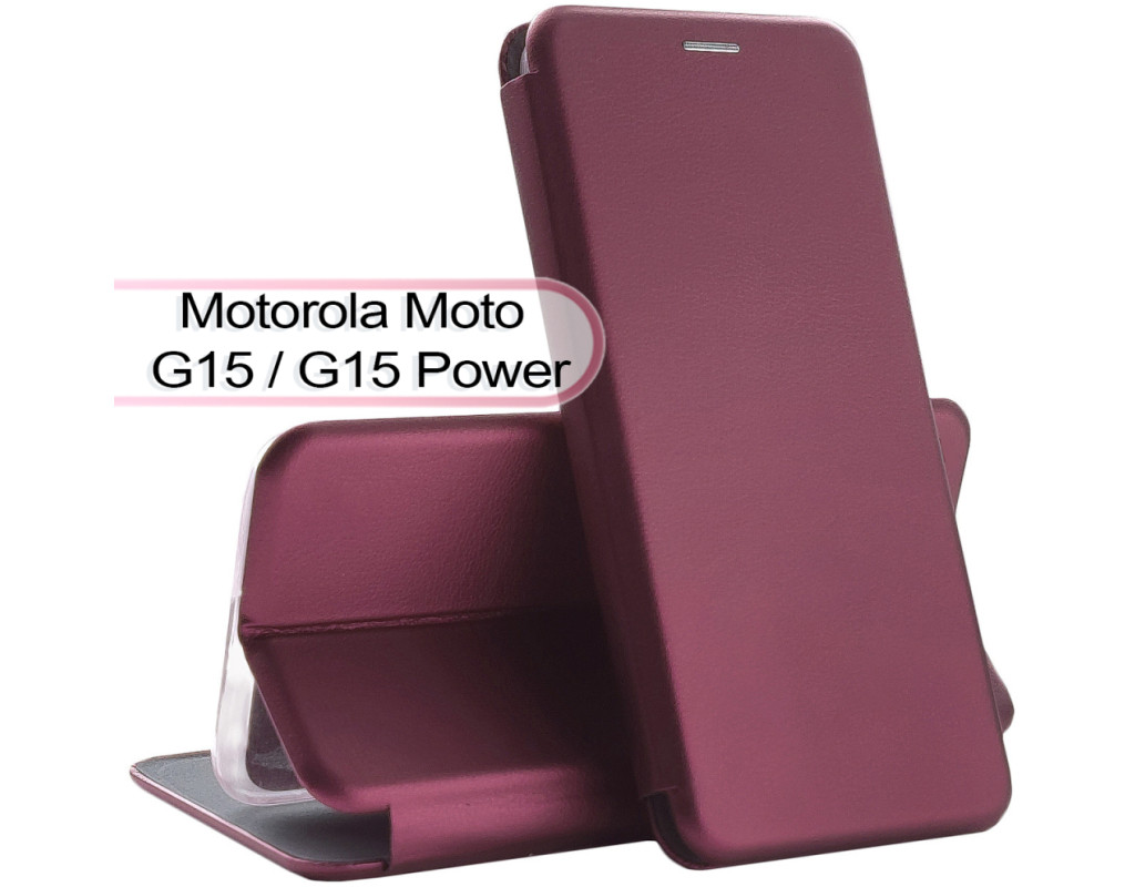 совместимость с моделями - Motorola G15, Motorola G15 Power, Тип чехла для телефона - книжка, Назначение - модельный, Материал - искусственная кожа, Цвет - бордовый