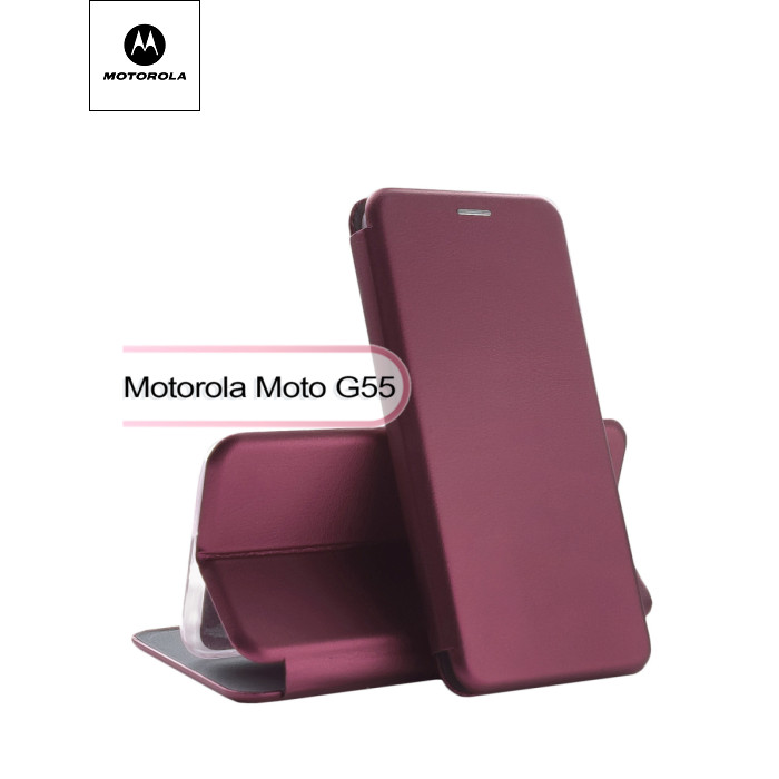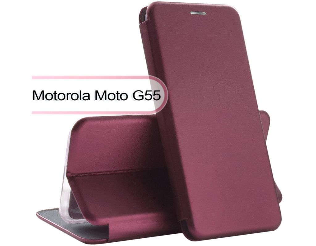 совместимость с моделями - Motorola G55, Тип чехла для телефона - книжка, Назначение - модельный, Материал - искусственная кожа, Цвет - бордовый