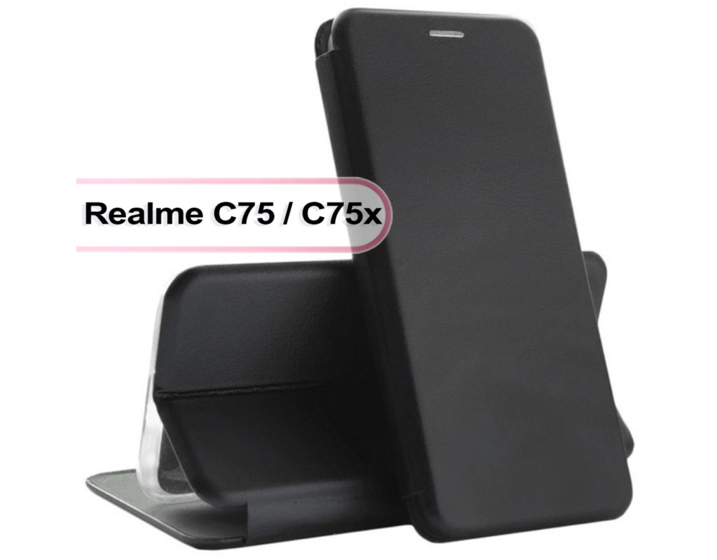 совместимость с моделями - Realme C75, Realme C75x, Тип чехла для телефона - книжка, Назначение - модельный, Материал - искусственная кожа, Цвет - черный