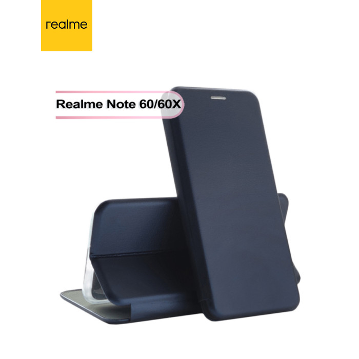 совместимость с моделями - Realme Note 60, Realme Note 60x, Тип чехла для телефона - книжка, Назначение - модельный, Материал - искусственная кожа, Цвет - темно-синий