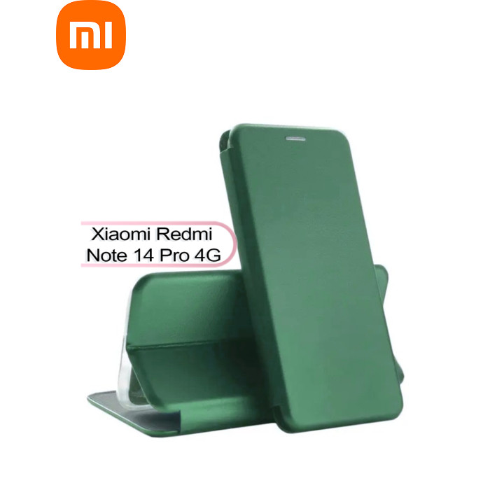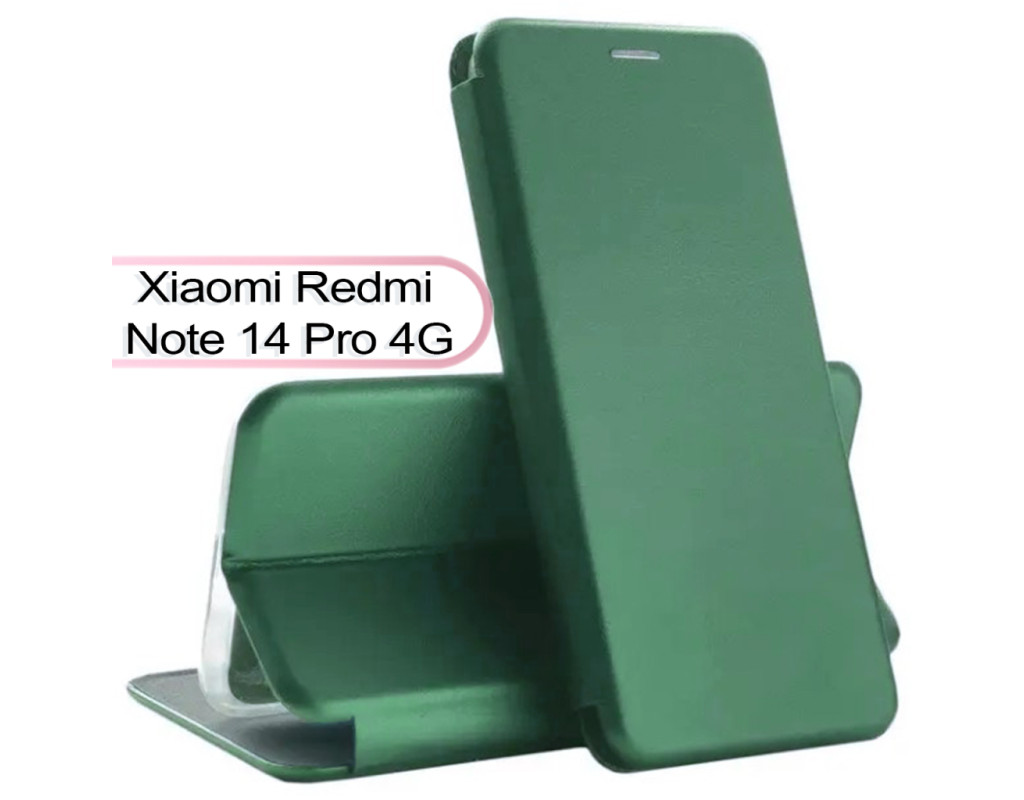 совместимость с моделями - Xiaomi Redmi Note 14 Pro 4G, Тип чехла для телефона - книжка, Назначение - модельный, Материал - искусственная кожа, Цвет - темно-зеленый