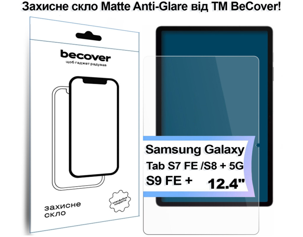 Стекло защитное BeCover Matte Anti-Glare Samsung Galaxy Tab S7 FE 12.4 SM-T730/SM-T735/S8 Plus 5G SM-X800/SM-X806/S9 FE (713441)