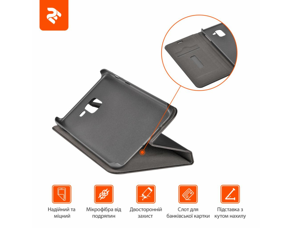 | Чехол-книжка черного цвета. Внешняя часть выполнена из высококачественных полиуретана и поликарбоната. Чехол надежно защищает смартфон с двух сторон от пыли и царапин, обеспечивает плотность посадки и точность расположения отверстий доступа к элементам управления. Чехол имеет слот для кредитной карты и складывается в подставку с разными углами наклона. |