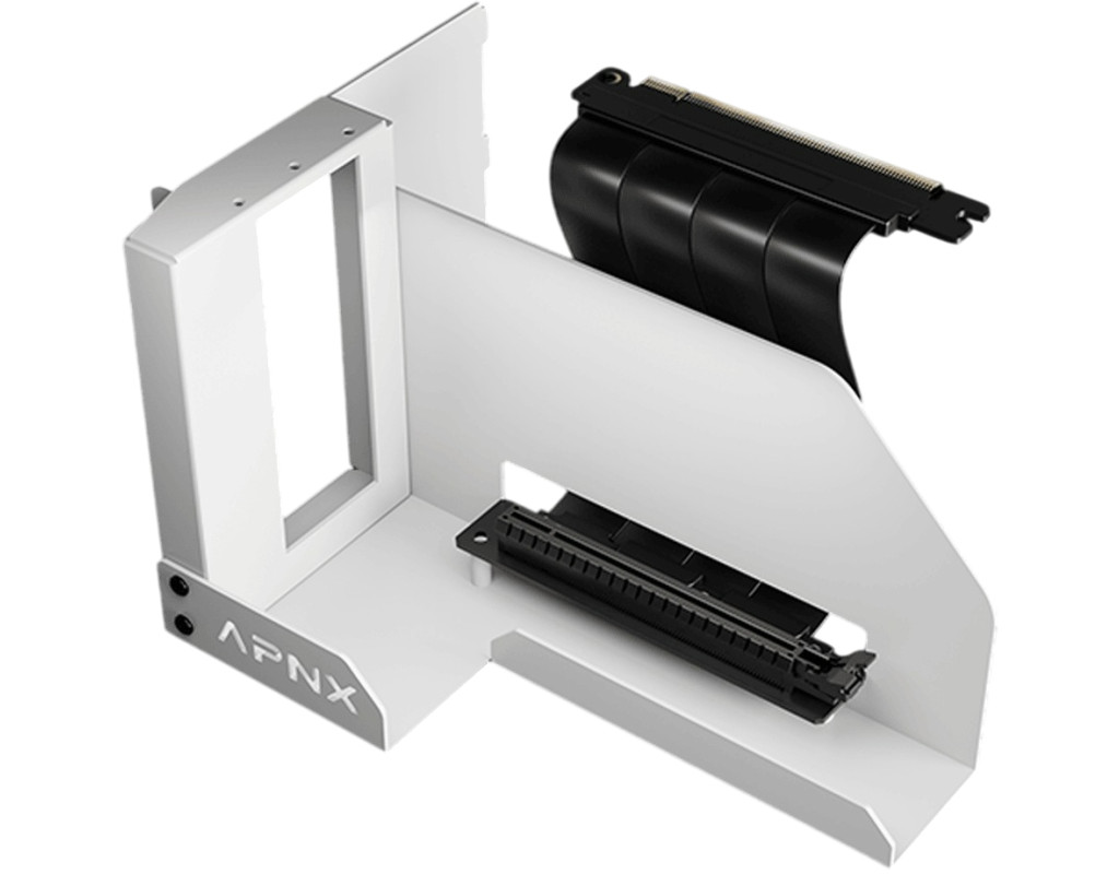 | APNX Kit 2 for V1 — это вертикальное крепление для графического процессора с входящим в комплект плоским кабелем PCI-E, позволяющим графической карте работать на полной скорости.