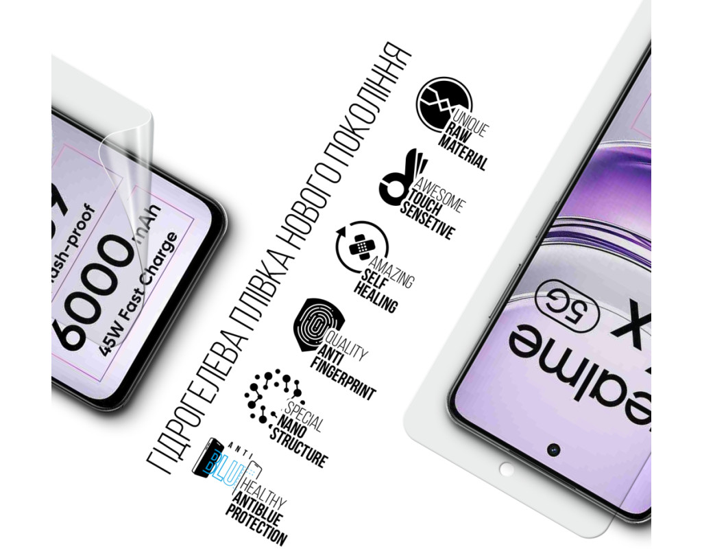 Назначение - для телефона, Вид покрытия - глянцевое, гидрогелевая, Совместимость с моделями - Realme 14x 5G, Количество в упаковке - 1 шт