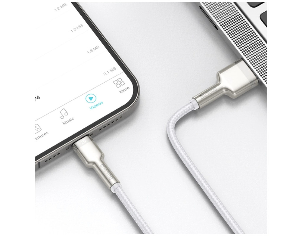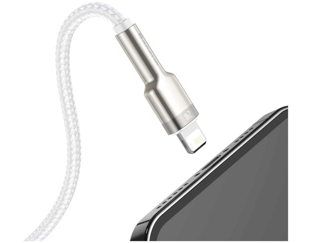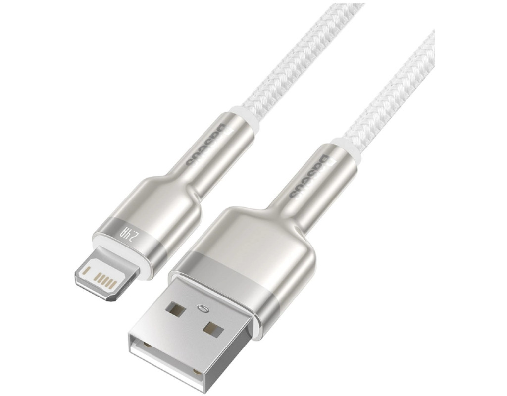 Дата кабель USB 2.0 AM to Lightning 1.0m Cafule Series Metal 2.4A White Baseus (CALJK-A02)