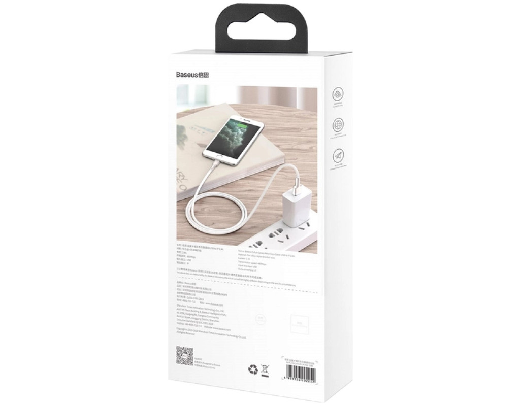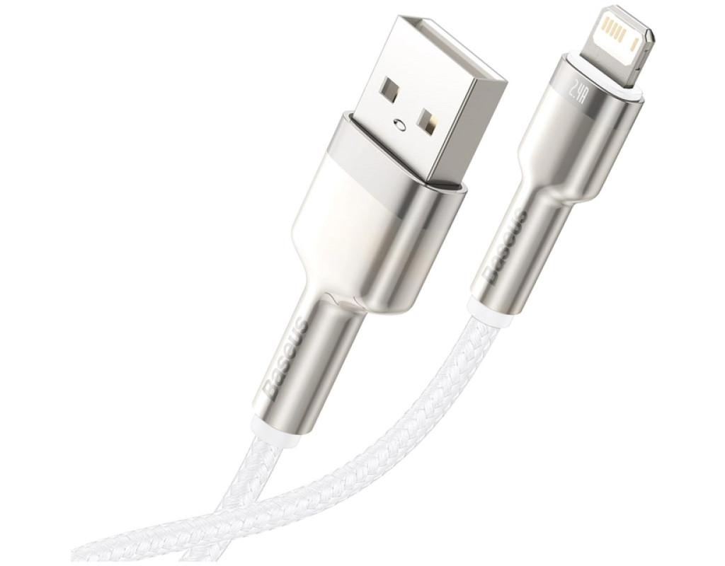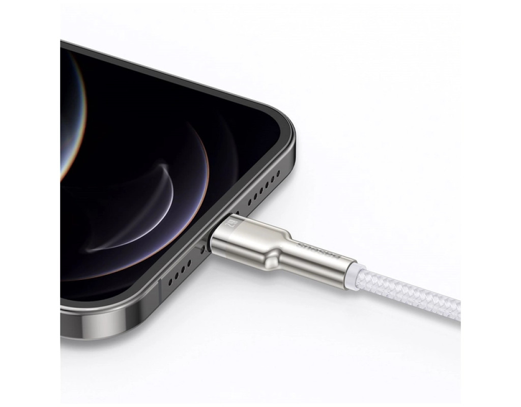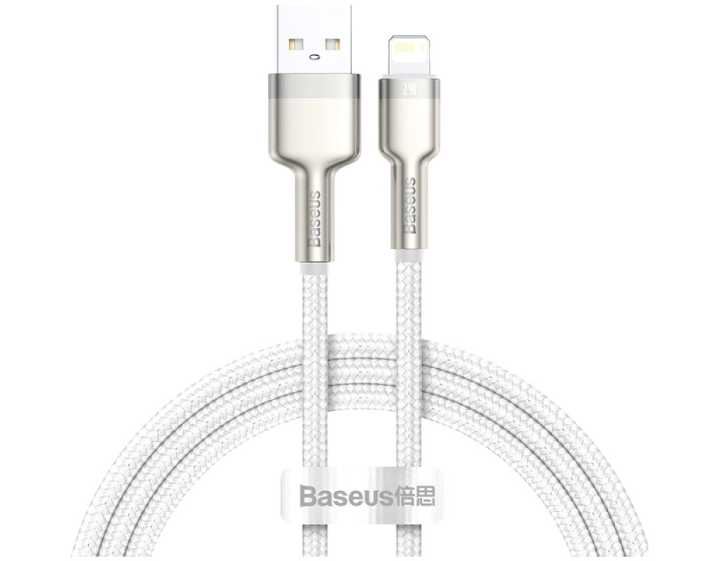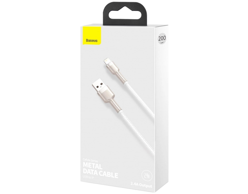 Дата кабель USB 2.0 AM to Lightning 2.0m Cafule Series Metal 2.4A White Baseus (CALJK-B02)