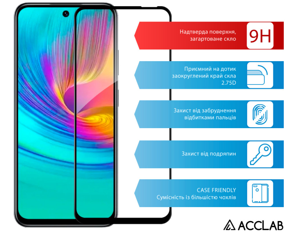 Стекло защитное ACCLAB Full Glue Infinix Smart 9 Black (1283126599293)