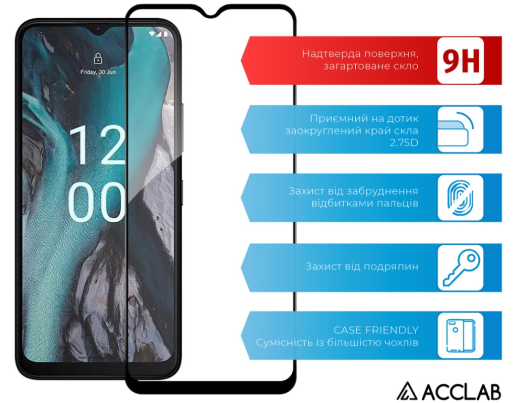 Стекло защитное ACCLAB Full Glue Nokia C22 Black (1283126582271)