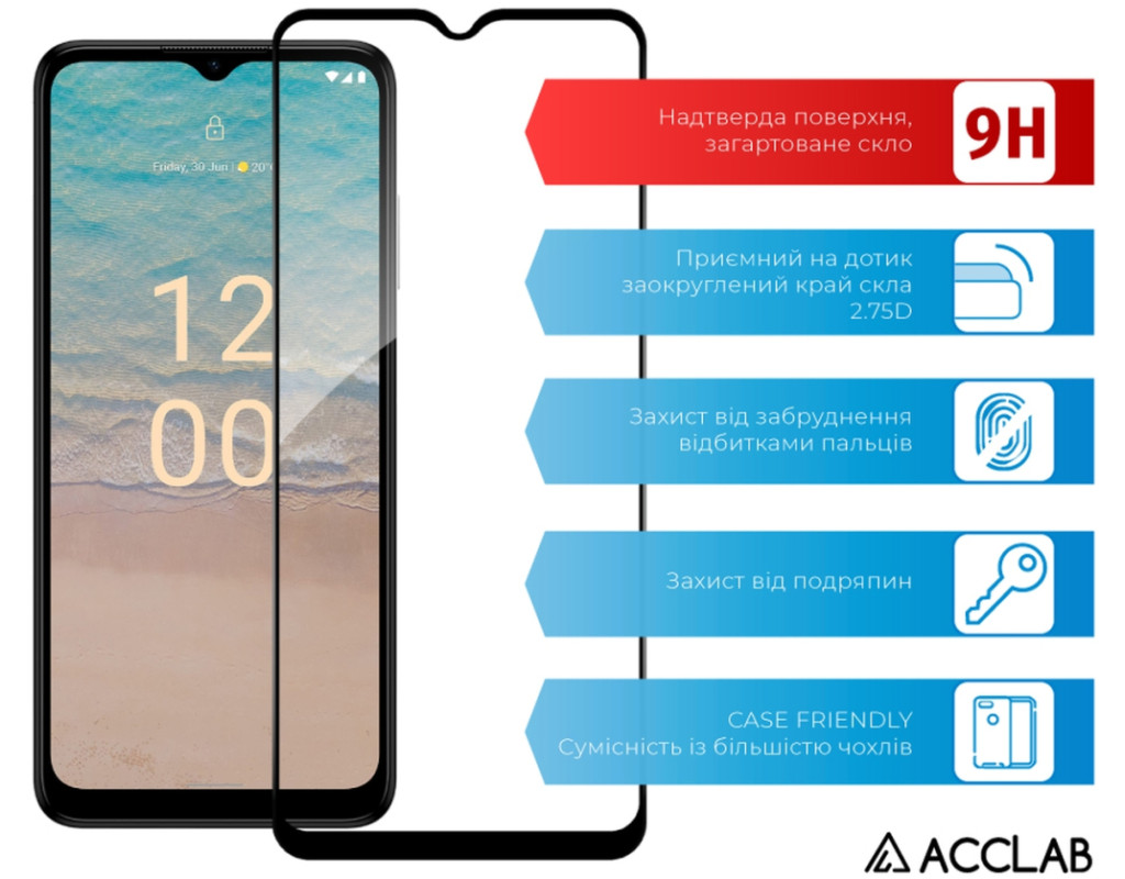 Стекло защитное ACCLAB Full Glue Nokia G22 Black (1283126582158)