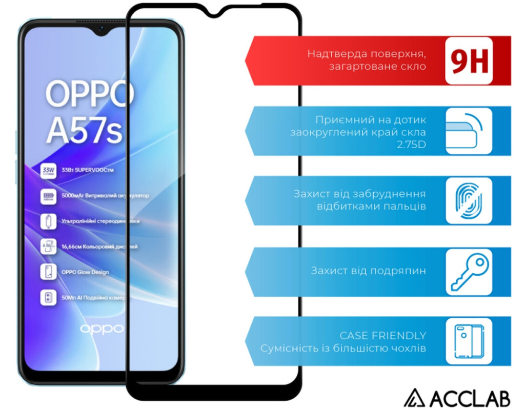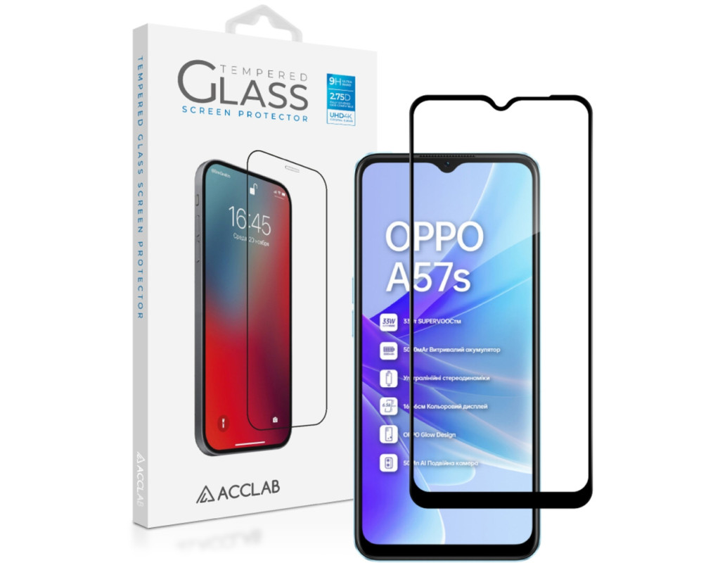 Стекло защитное ACCLAB Full Glue Oppo A57S Black (1283126576690)