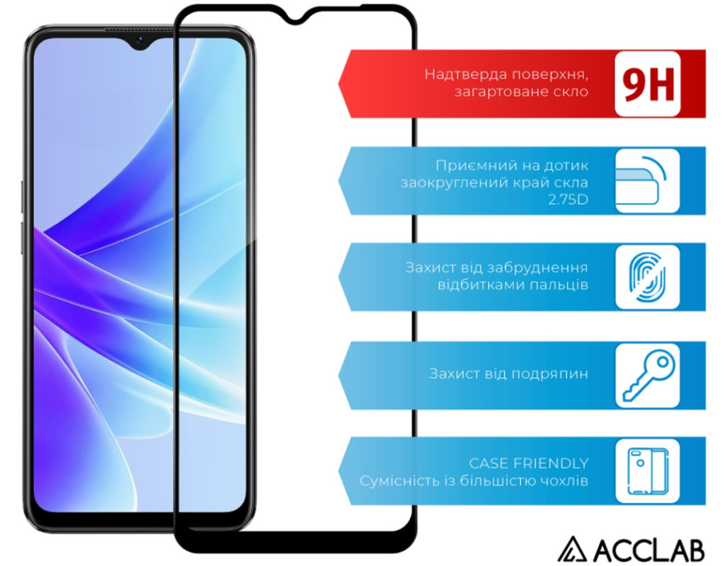 Стекло защитное ACCLAB Full Glue Oppo A77S Black (1283126576768)