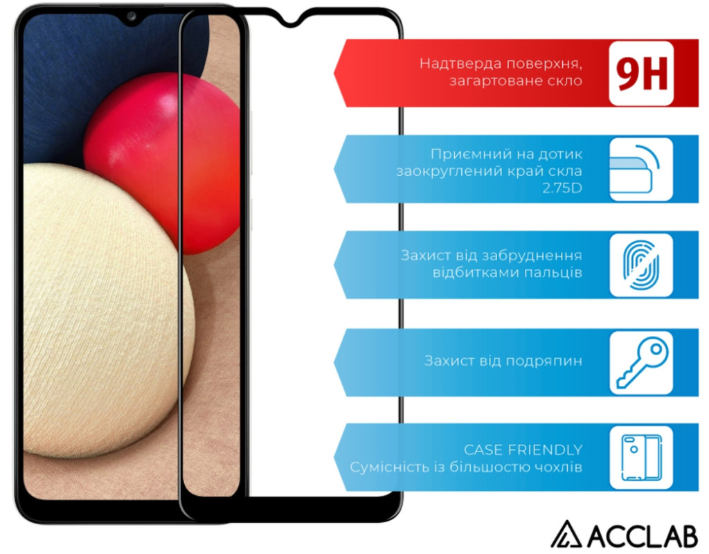 Стекло защитное ACCLAB Full Glue Samsung A02s Black (1283126509612)