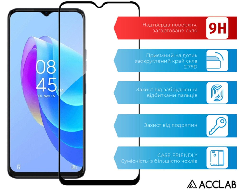 Стекло защитное ACCLAB Full Glue Tecno Spark 9 Pro Black (1283126547300)