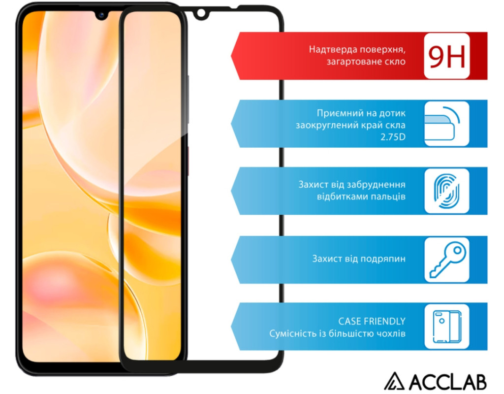 Стекло защитное ACCLAB Full Glue ZTE Blade A55 Black (1283126598852)