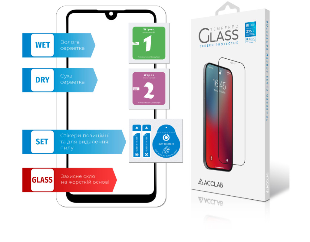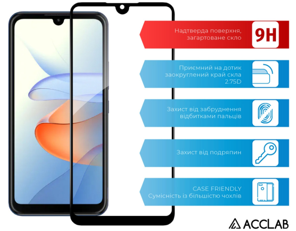 Стекло защитное ACCLAB Full Glue ZTE Blade L220 Black (1283126583346)