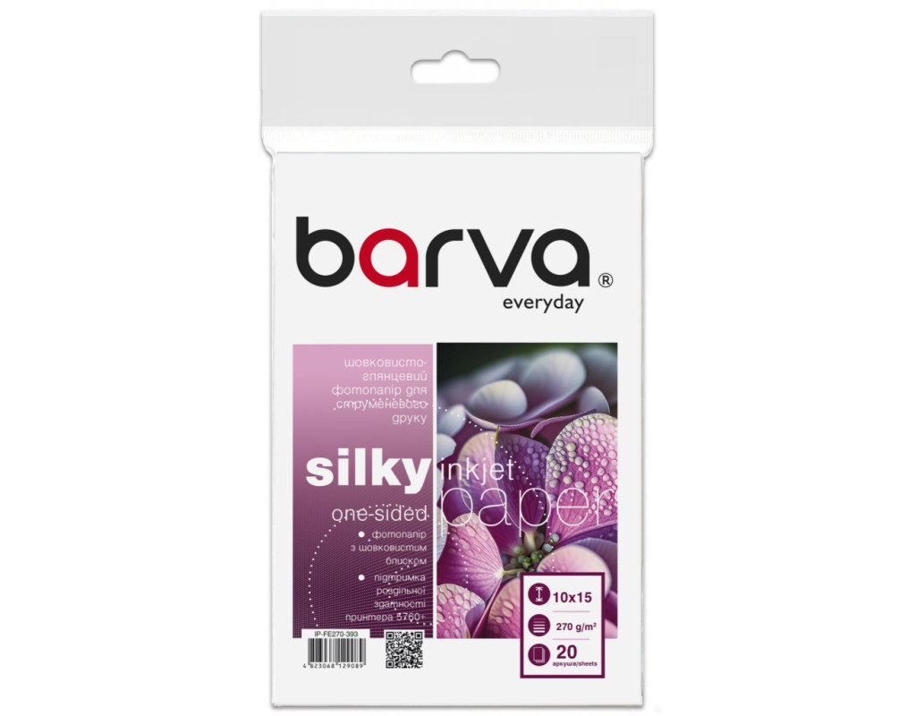 | Самостійний на друк на струменевих принтерах чи БФП в домашніх умовах або в офісі дає можливість швидко створювати широкий спектр документів або друкувати фото. Для того щоб цей процес приносив виключно позитивні емоції дуже важливо обрати якісний носій для друку. При цьому бажано щоб вартість такого носія була доступною і не обмежувала Вас. Під торговою маркою Barva на ринок виходить широкий асортимент матеріалів для струменевого друку, який допоможе Вам з виконанням різних завдань - від друку фотографій, до виготовлення рекламних і маркетингових матеріалів. Носії для струминного друку під цією торговою маркою випускаються на ринок українською компанією ТОВ «В. М. » з 2003 року і вже встигли завоювати довіру користувачів незмінно високою якістю та доступними цінами. Фотопапір шовковисто-глянцевий 270 г/м2, 10x15 см, 60 арк Everyday Barva (IP-FE270-394) принтерами та БФП можна використовувати? Паперова продукція Barva показує відмінні результати друку з усіма струминними пристроями, представленими на ринку. Здійснюючи вибір, зверніть увагу на рекомендації виробника техніки щодо формату та максимальній щільності фотопаперу для Вашої моделі. Для досягнення оптимального результату по передачі кольору і світлостійкості ми рекомендуємо використовувати комбінацію - Фотопапір Barva + чорнило Barva. На що потрібно звернути увагу при виборі: Як правильно обрати відповідну щільність фотопаперу? Щільність фотопаперу зазвичай вимірюється в грамах на квадратний метр і обов'язково вказується виробником в назві товару та на упаковці. Щільність впливає на такі параметри відбитка: Потрібно також враховувати, що зі збільшенням щільності зростає і вартість паперу. Перед тим як обрати необхідну саме Вам щільність, потрібно визначитися з основними завданнями. Наші рекомендації наступні: Носії легко впізнаванні за рахунок гладенького покриття і є безпрограшним вибором для друку фотографій. Даний тип фотопаперу чудово передає відтінки кольорів, зображення виходить яскравим і насиченим. Інші особливості глянцевого фотопаперу: Основні сфери застосування глянцевого паперу: Серія паперу Barva Everyday Ідеальний варіант для економного користувача, який цінує співвідношення ціна-якість. Сировина для фотопаперу даної серії випускається в Китаї і проходить ретельний контроль якості. Основні особливості серії Barva Everyday: Фотопапір 10x15 Даний формат є стандартним форматом для друку фотографій для розміщення в альбомі. Розмір листа - 100×150 мм Рекомендуємо обрати даний формат фотопаперу для друку наступних типів документів: Тип покриття;Щільність;Формат та розмір;Світлостійкість і передача кольору; довговічність;поглинання чорниламожливість деформації носія. Друк офісних документів - 80 г/м2;Друк презентацій, діаграм, постерів - 90 - 120 г/м2;Друк картинок - більше 90 г/м2;Друк фотографій - більше 120 г/м2;Друк професійних фотографій - більше 180 г/м2. Друк всіх видів фотографій - від аматорських до професійних;Якість фотографій не відрізняються від отриманих у фотостудії;Підвищена світлостійкість за рахунок додаткового шару. Друк фото високої якості (в тому числі фото на документи);Виготовлення постерів та афіш;Друк календарів;Виготовлення рекламної продукції. Оптимальне співвідношення ціна-якість;Широкий асортимент щільності - від 100 до 260 г/м2;Формати А4, А3, 10х15;Варіанти односторонньо