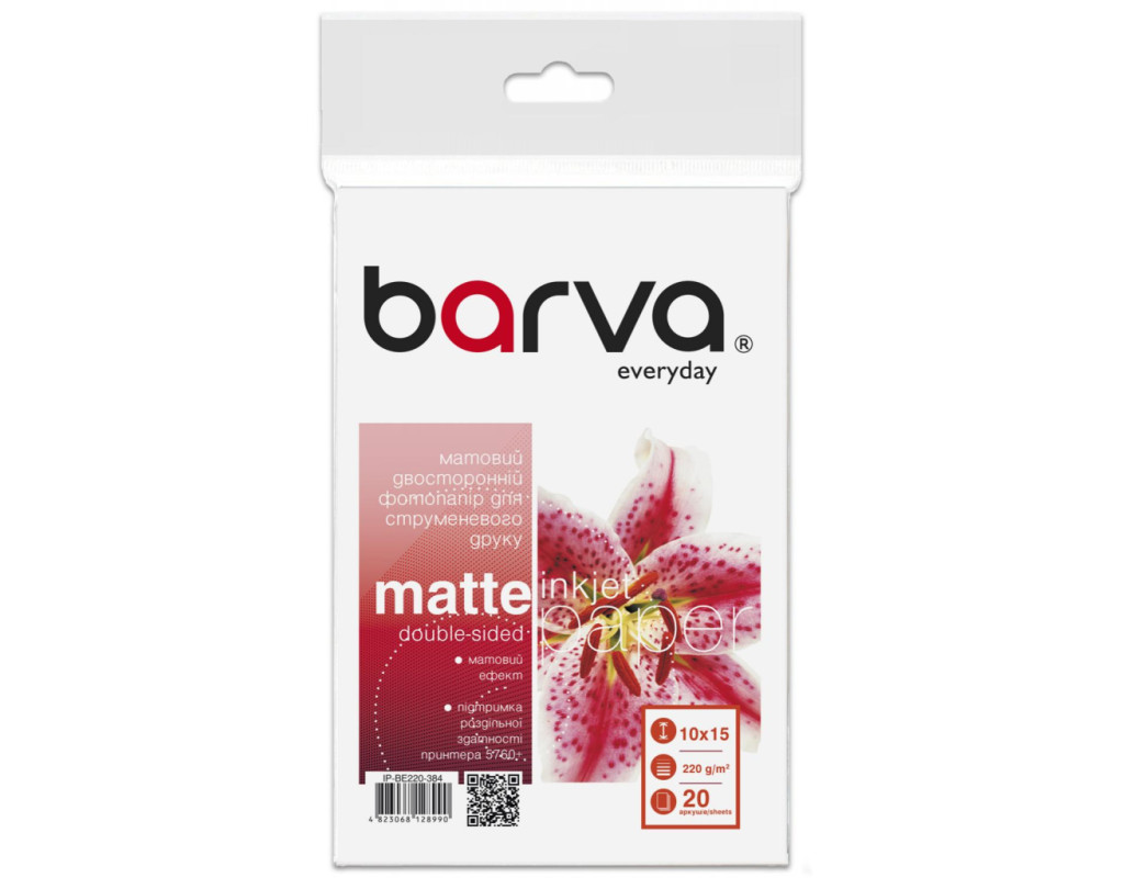 | Самостійний на друк на струменевих принтерах чи БФП в домашніх умовах або в офісі дає можливість швидко створювати широкий спектр документів або друкувати фото. Для того щоб цей процес приносив виключно позитивні емоції дуже важливо обрати якісний носій для друку. При цьому бажано щоб вартість такого носія була доступною і не обмежувала Вас. Під торговою маркою Barva на ринок виходить широкий асортимент матеріалів для струменевого друку, який допоможе Вам з виконанням різних завдань - від друку фотографій, до виготовлення рекламних і маркетингових матеріалів. Носії для струминного друку під цією торговою маркою випускаються на ринок українською компанією ТОВ «В. М. » з 2003 року і вже встигли завоювати довіру користувачів незмінно високою якістю та доступними цінами. Фотопапір матовий двосторонній 220 г/м2, 10x15 см, 100 арк Everyday Barva (IP-BE220-385) принтерами та БФП можна використовувати? Паперова продукція Barva показує відмінні результати друку з усіма струминними пристроями, представленими на ринку. Здійснюючи вибір, зверніть увагу на рекомендації виробника техніки щодо формату та максимальній щільності фотопаперу для Вашої моделі. Для досягнення оптимального результату по передачі кольору і світлостійкості ми рекомендуємо використовувати комбінацію - Фотопапір Barva + чорнило Barva. На що потрібно звернути увагу при виборі: Двосторонній матовий фотопапір для струменевого друку Спеціальний тип фотопаперу, який дозволяє наносити зображення з обох сторін паперу. Це значно розширює можливості використання даного носія - від друку листівок до створення фотоальбомів. Зображення, надруковані на матовому носії, відрізняються високою контрастністю і деталізацією зображення, глибиною і шовковистістю кольорів. Також серед переваг даного типу фотопаперу можна виділити: Основні сфери застосування двостороннього матового фотопаперу: Ідеальний варіант для економного користувача, який цінує співвідношення ціна-якість. Сировина для фотопаперу даної серії випускається в Китаї і проходить ретельний контроль якості. Тип покриття;Щільність;Формат та розмір;Світлостійкість і передача кольору. Універсальність застосування - від простих завдань до професійного фото;Нижче вартість в порівнянні з глянцевим папером;Не залишаються відбитки пальців, на відміну від глянця;Відсутні відблиски. Створення фотокниг;Виготовлення весільних, випускних альбомів;Друк листівок;Виготовлення рекламної продукції, брошур і листівок;Друк календарів, меню ресторанів. |