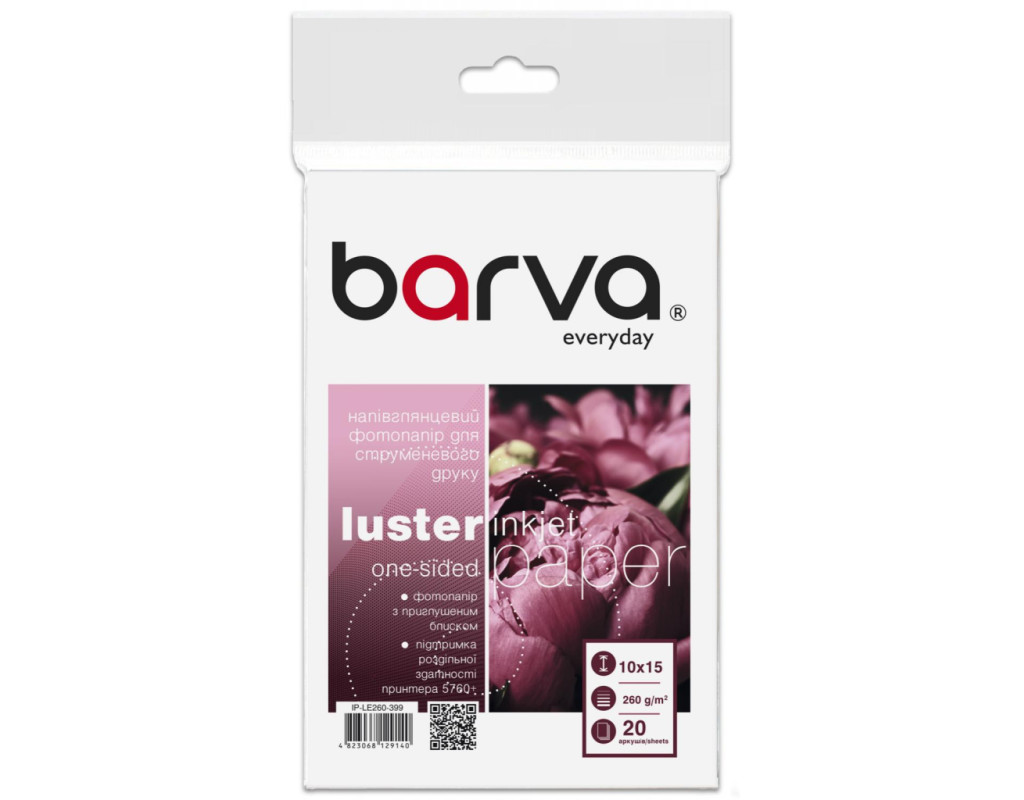 | Самостійний на друк на струменевих принтерах чи БФП в домашніх умовах або в офісі дає можливість швидко створювати широкий спектр документів або друкувати фото. Для того щоб цей процес приносив виключно позитивні емоції дуже важливо обрати якісний носій для друку. При цьому бажано щоб вартість такого носія була доступною і не обмежувала Вас. Під торговою маркою Barva на ринок виходить широкий асортимент матеріалів для струменевого друку, який допоможе Вам з виконанням різних завдань - від друку фотографій, до виготовлення рекламних і маркетингових матеріалів. Носії для струминного друку під цією торговою маркою випускаються на ринок українською компанією ТОВ «В. М. » з 2003 року і вже встигли завоювати довіру користувачів незмінно високою якістю та доступними цінами. Фотопапір напівглянцевий 260 г/м2, 10x15 см, 60 арк Everyday Barva (IP-LE260-400) принтерами та БФП можна використовувати? Паперова продукція Barva показує відмінні результати друку з усіма струминними пристроями, представленими на ринку. Здійснюючи вибір, зверніть увагу на рекомендації виробника техніки щодо формату та максимальній щільності фотопаперу для Вашої моделі. Для досягнення оптимального результату по передачі кольору і світлостійкості ми рекомендуємо використовувати комбінацію - Фотопапір Barva + чорнило Barva. На що потрібно звернути увагу при виборі: Як правильно обрати відповідну щільність фотопаперу? Щільність фотопаперу зазвичай вимірюється в грамах на квадратний метр і обов'язково вказується виробником в назві товару та на упаковці. Щільність впливає на такі параметри відбитка: Потрібно також враховувати, що зі збільшенням щільності зростає і вартість паперу. Перед тим як обрати необхідну саме Вам щільність, потрібно визначитися з основними завданнями. Наші рекомендації наступні: Носії легко впізнаванні за рахунок гладенького покриття і є безпрограшним вибором для друку фотографій. Даний тип фотопаперу чудово передає відтінки кольорів, зображення виходить яскравим і насиченим. Інші особливості глянцевого фотопаперу: Основні сфери застосування глянцевого паперу: Серія паперу Barva Everyday Ідеальний варіант для економного користувача, який цінує співвідношення ціна-якість. Сировина для фотопаперу даної серії випускається в Китаї і проходить ретельний контроль якості. Основні особливості серії Barva Everyday: Фотопапір 10x15 Даний формат є стандартним форматом для друку фотографій для розміщення в альбомі. Розмір листа - 100×150 мм Рекомендуємо обрати даний формат фотопаперу для друку наступних типів документів: Тип покриття;Щільність;Формат та розмір;Світлостійкість і передача кольору; довговічність;поглинання чорниламожливість деформації носія. Друк офісних документів - 80 г/м2;Друк презентацій, діаграм, постерів - 90 - 120 г/м2;Друк картинок - більше 90 г/м2;Друк фотографій - більше 120 г/м2;Друк професійних фотографій - більше 180 г/м2. Друк всіх видів фотографій - від аматорських до професійних;Якість фотографій не відрізняються від отриманих у фотостудії;Підвищена світлостійкість за рахунок додаткового шару. Друк фото високої якості (в тому числі фото на документи);Виготовлення постерів та афіш;Друк календарів;Виготовлення рекламної продукції. Оптимальне співвідношення ціна-якість;Широкий асортимент щільності - від 100 до 260 г/м2;Формати А4, А3, 10х15;Варіанти одностороннього та 