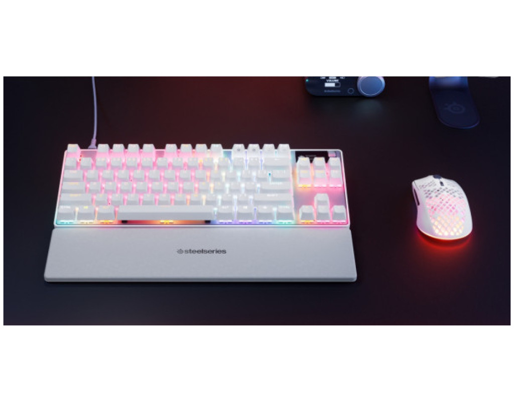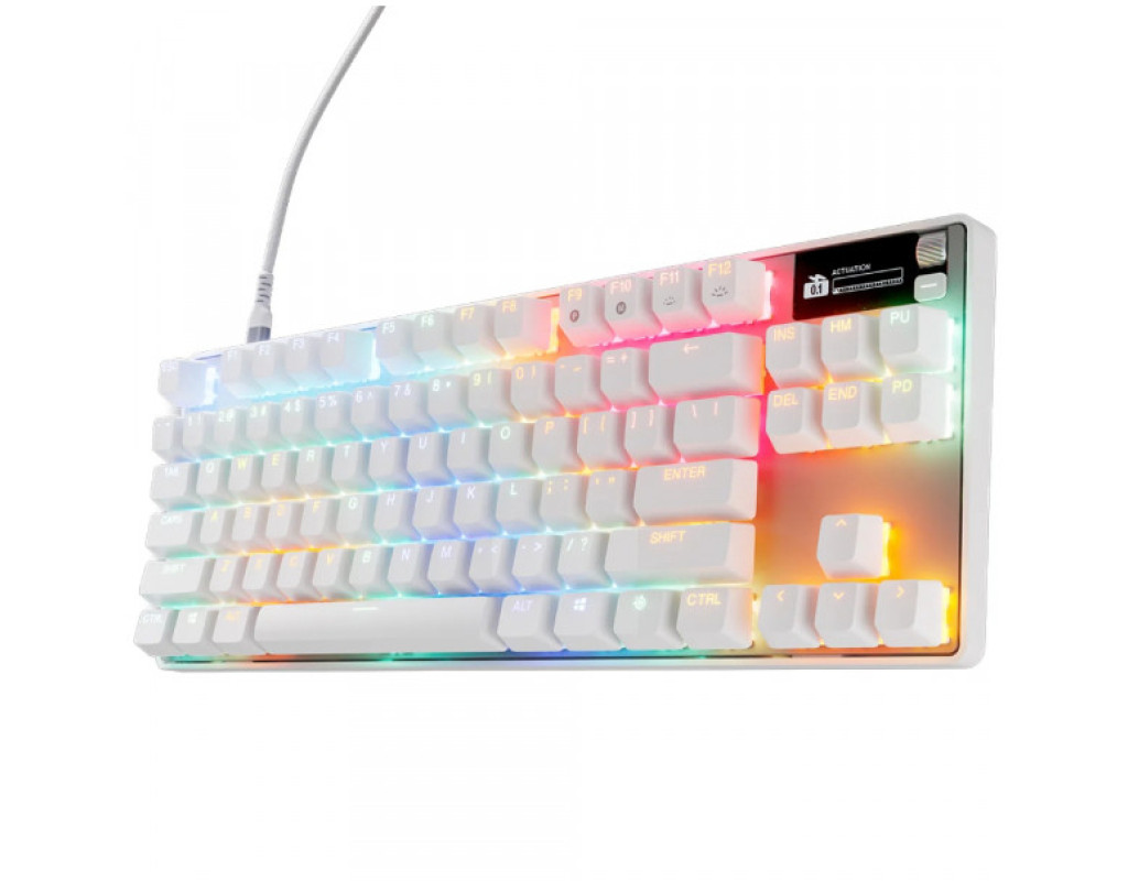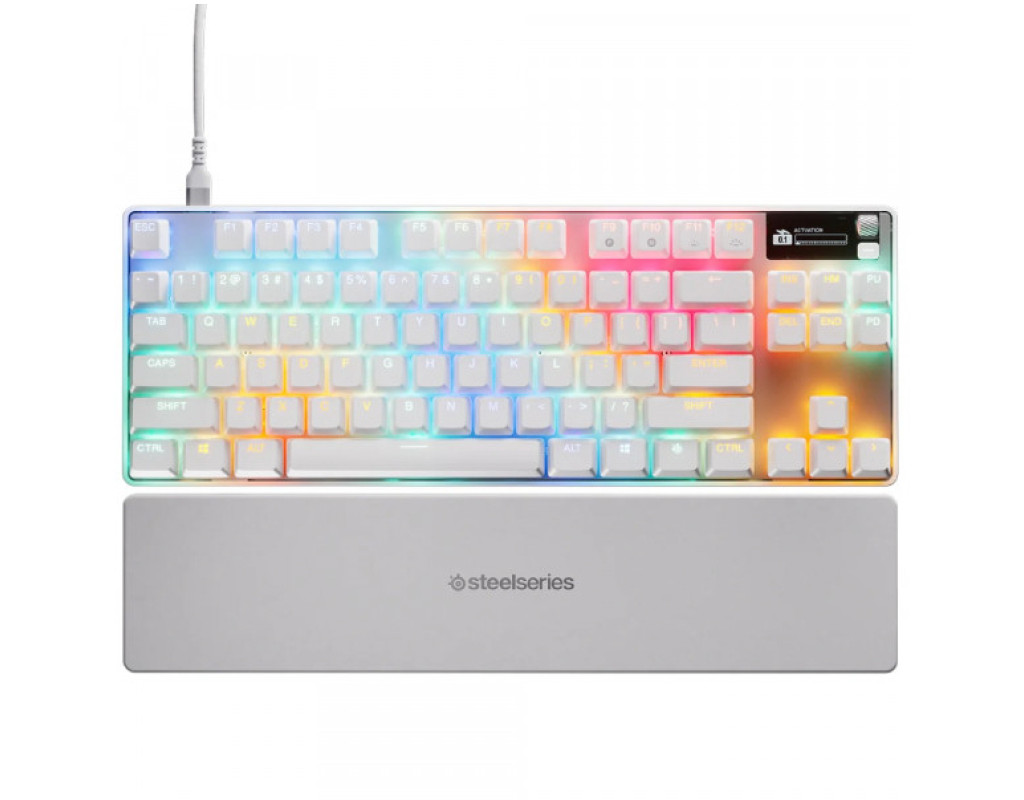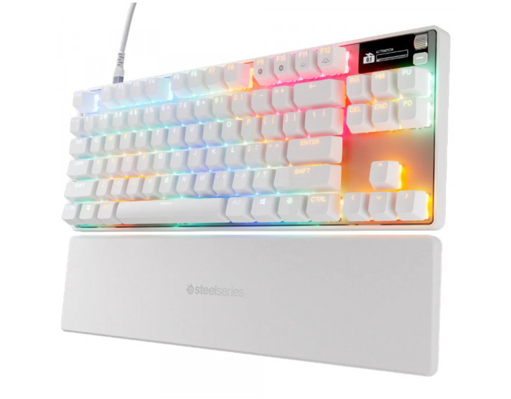 | Клавиатура SteelSeries Apex Pro TKL Gen 3 HyperMagnetic OmniPoint 3.0 OLED USB UA White (64898) — это произведение инженерного искусства, сочетающее эстетичный дизайн и передовые технологии для создания идеального инструмента для гейминга. Она разработана для требовательных геймеров, которые стремятся достичь максимума от своей игровой техники. Благодаря уникальной технологии HyperMagnetic OmniPoint 3.0, эта клавиатура оснащена оптическими/механическими переключателями, которые позволяют настраивать расстояние срабатывания каждой клавиши от 0.1 до 4.0 мм. Это означает, что вы можете настроить клавиатуру под свой стиль игры: от молниеносной реакции в шутерах до чётких и выверенных команд в стратегиях. С возможностью выбора из 40 уровней чувствительности для каждой клавиши, ваш геймплей станет настолько персонализированным, насколько вы этого пожелаете. Качество продукции SteelSeries всегда было на высшем уровне, и клавиатура не является исключением. Она может выдержать до 100 миллионов нажатий, что гарантирует долговечность и надёжность на протяжении многих лет интенсивного использования. Интегрированный металлический ролик позволяет легко регулировать громкость и управлять мультимедиа, обеспечивая удобство во время игровых сессий. Одной из самых выразительных особенностей является встроенный OLED-дисплей, который выступает как информативный командный центр. Он позволяет быстро изменять настройки и переключаться между профилями без отрыва от игры. RGB-подсветка, поддерживающая миллионы оттенков, создаёт захватывающую атмосферу, погружая вас в мир игры. Фирменное программное обеспечение SteelSeries Engine открывает безграничные возможности для настройки подсветки и функций клавиш, позволяя создать уникальный стиль, гармонирующий с другими вашими устройствами SteelSeries. Клавиатура также оснащена съёмной магнитной подставкой для запястий, которая обеспечивает комфорт во время длительных игровых сессий, уменьшая усталость рук. Съёмный кабель делает устройство лёгким для транспортировки и хранения. Выбирая SteelSeries Apex Pro TKL Gen 3, вы получаете мощный инструмент для профессионального гейминга, поддерживающий Windows и Mac OS, даря вам бескомпромиссную производительность и комфорт. Это больше, чем клавиатура — это ваш ключ к вершинам игрового мира. |