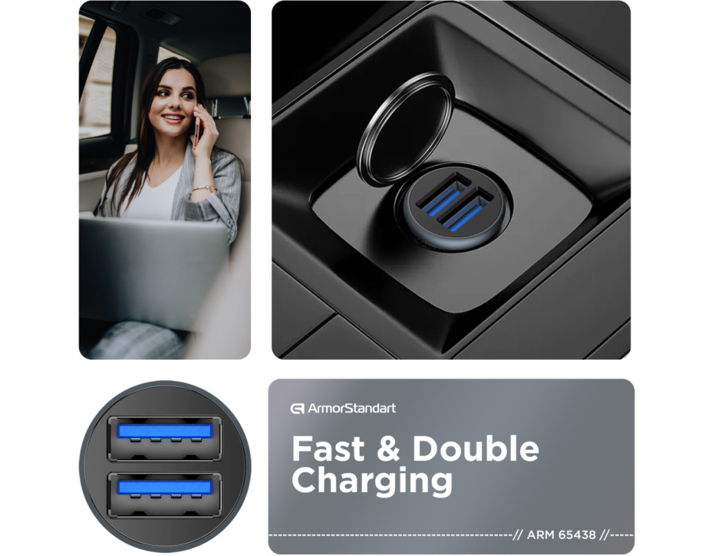 Зарядное устройство Armorstandart 2xUSB QC3.0 Grey + cable USB-C (ARM82459)