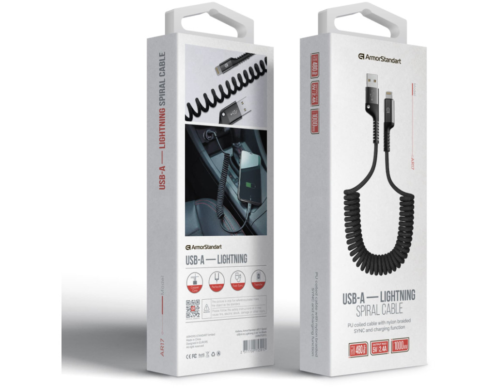 Дата кабель USB 2.0 AM to Lightning 1.0m Spiral 2.4A black Armorstandart (ARM75391)