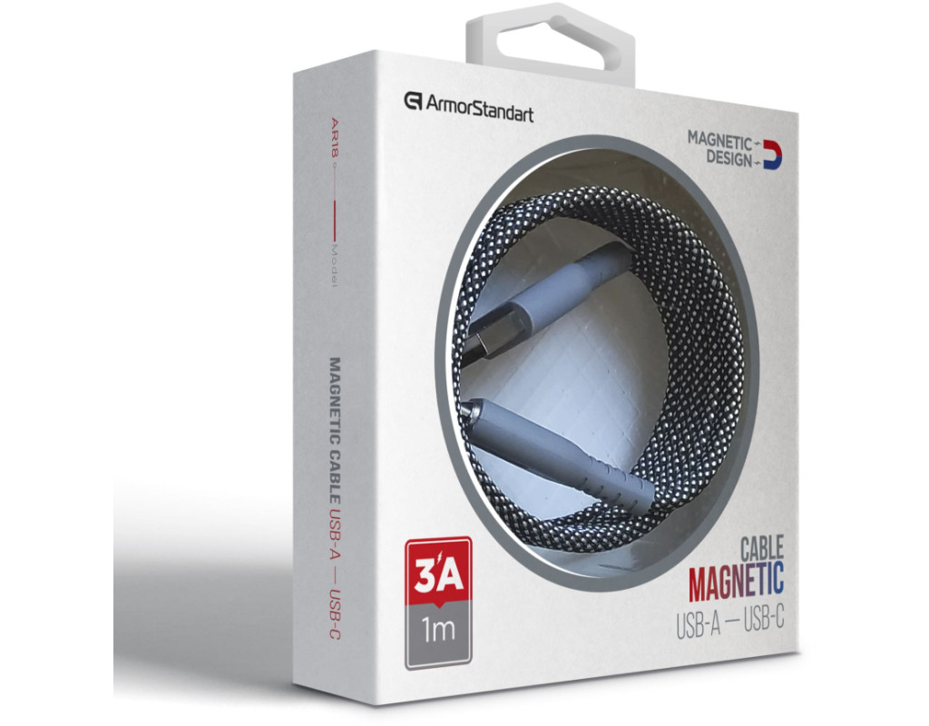 Дата кабель USB 2.0 AM to USB-C 1.0m Magnetic 3A black Armorstandart (ARM75514)