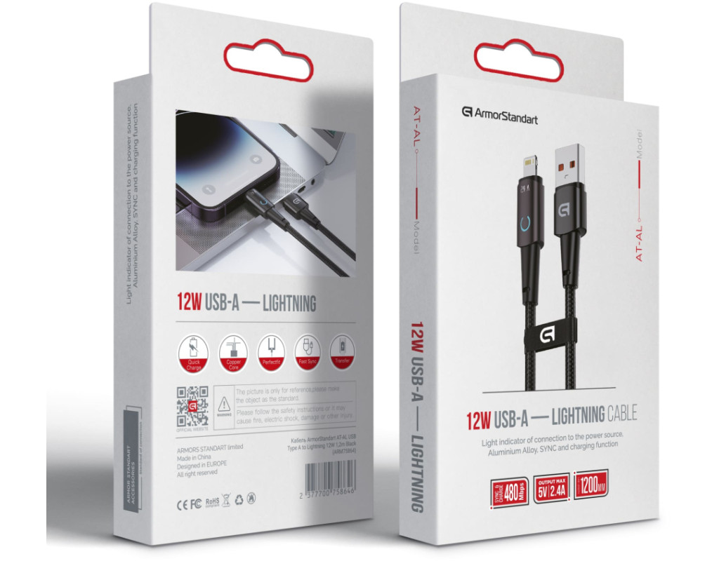 Дата кабель USB 2.0 AM to Lightning 1.2m 12W black Armorstandart (ARM75864)
