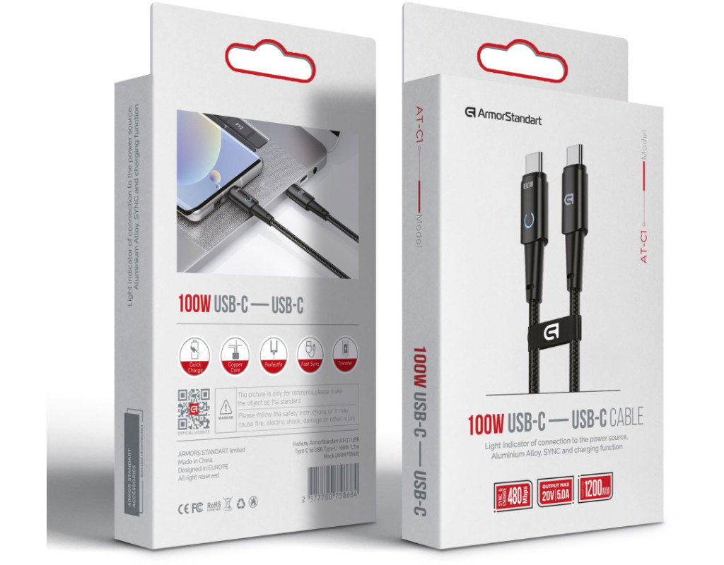 Дата кабель USB-C to USB-C 1.2m Magnetic 100W black Armorstandart (ARM75868)