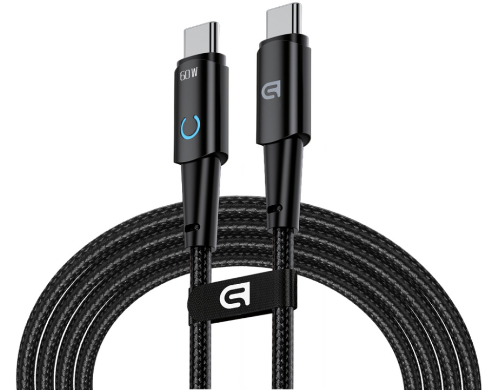 Тип - кабель, Тип коннектора 1 - USB Type-C, Тип коннектора 2 - USB Type-C, длина - 1.2 м, 60 W, Цвет - черный