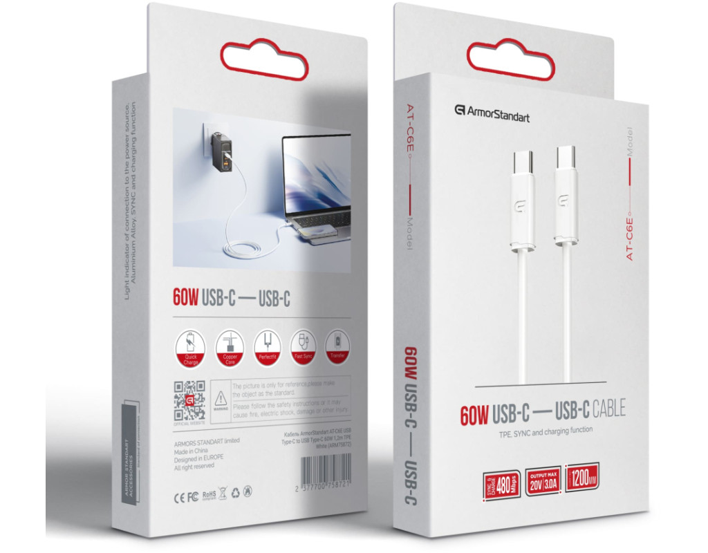 Дата кабель USB-C to USB-C 1.2m TPE 60W white Armorstandart (ARM75872)