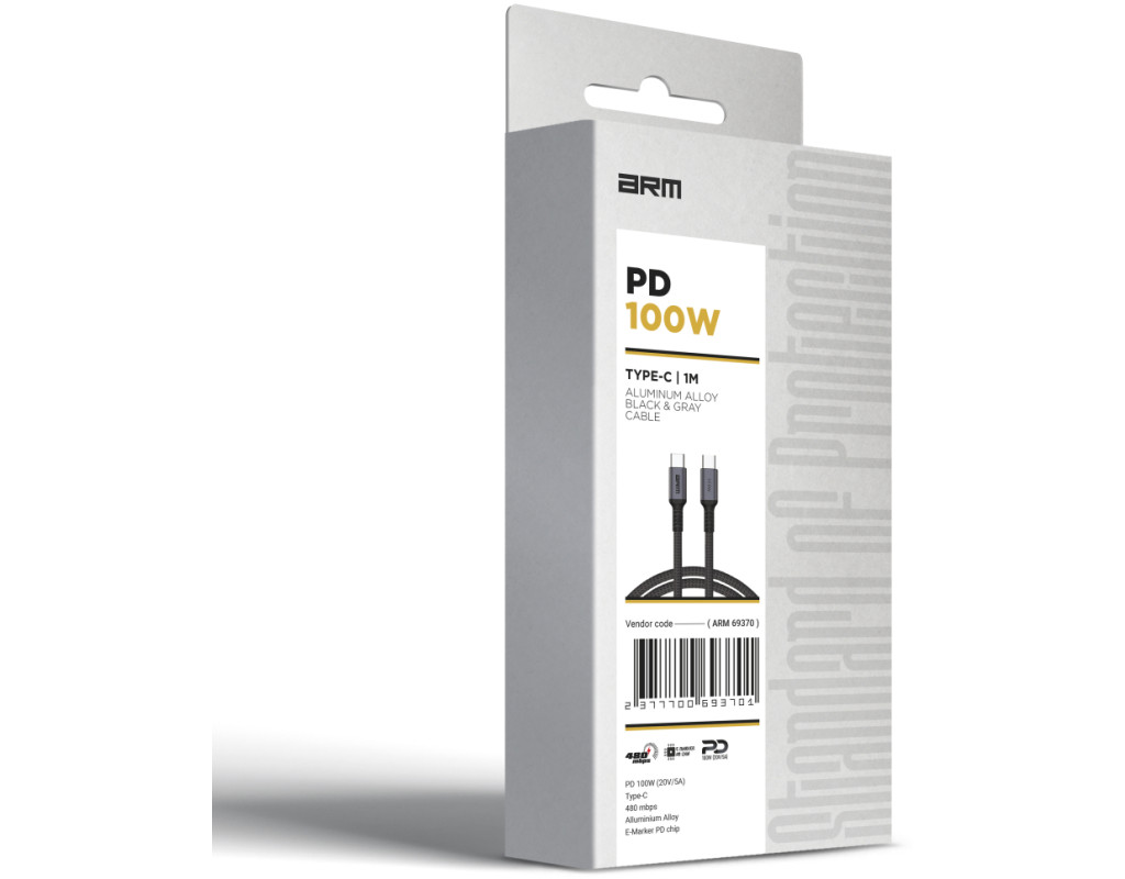 Дата кабель USB-C to USB-C 2.0m PD 100W black-grey Armorstandart (ARM69371)