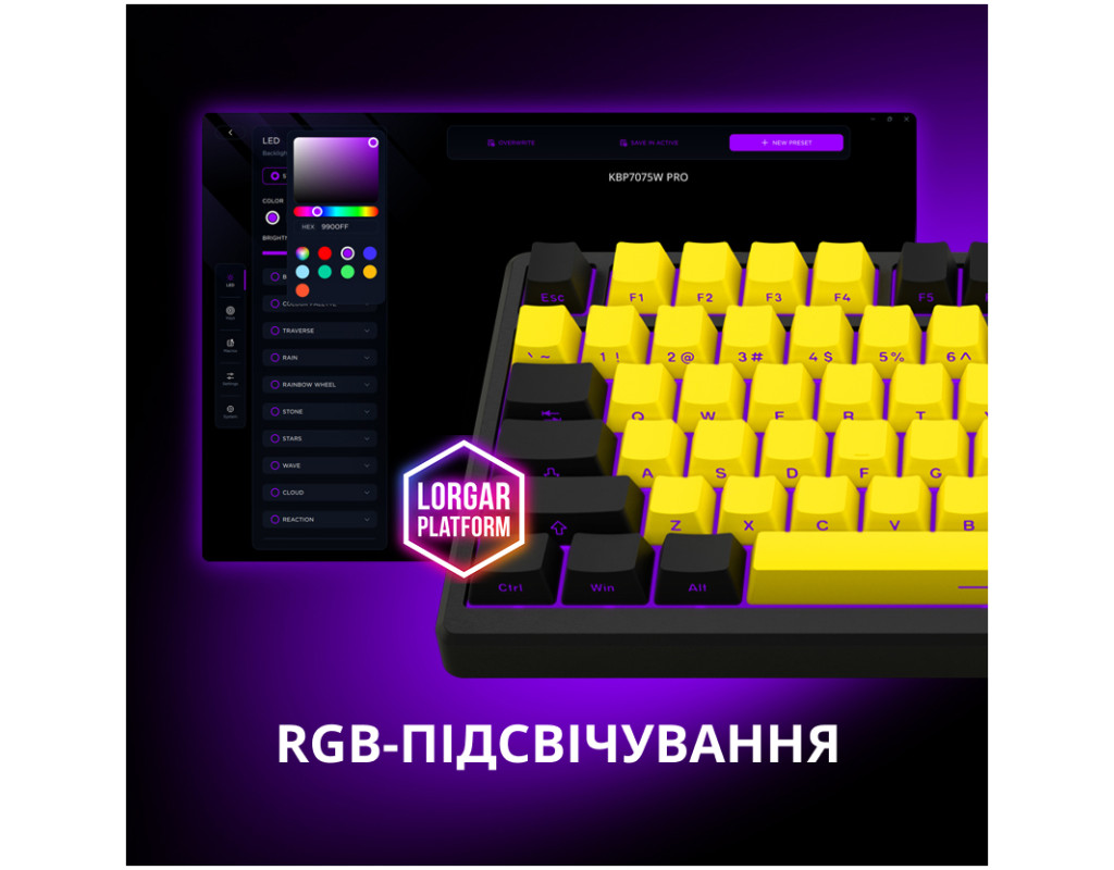 | Клавиатура Lorgar KBP7075W Pro RGB Wireless/Bluetooth/USB UA Beige (LRG-KBP7075W-RT-US) – это воплощение современных технологий и стильного дизайна, созданная для ценителей игр и эффективной работы. В компактном 75% формате эта клавиатура не только экономит место на вашем столе, но и добавляет эстетической привлекательности вашему пространству благодаря своему изысканному бежевому цвету. Оснащена механическими переключателями Linear Switch Toxic Purple, Lorgar KBP7075W Pro обеспечивает невероятно плавный и бесшумный опыт нажатия клавиш. Линейная характеристика переключателей дарит каждому нажатию ощущение легкости и устойчивости, что делает эту клавиатуру идеальной для длительных игровых сессий и продуктивной работы. Благодаря функции горячей замены переключателей, вы можете легко настроить клавиатуру под свои индивидуальные потребности без необходимости в пайке. RGB-подсветка является не только эстетическим элементом, но и средством самовыражения. Легкая в настройке, эта функция позволяет подобрать идеальный оттенок и режим подсветки под ваше настроение. Встроенная память сохраняет все настройки, даже если вы используете клавиатуру на различных устройствах, обеспечивая удобство и непрерывность работы. Клавиатура Lorgar KBP7075W Pro также может похвастаться качеством материалов. Полимерные колпачки из PBT-пластика являются долговечными и стойкими к износу, обеспечивая сохранение эстетичности даже после длительного использования. Уникальная система уплотнителей смягчает нажатие, добавляя комфорта и делая процесс использования еще более приятным. Эта модель поддерживает универсальную систему подключения, предлагая пользователю выбор между проводным соединением, беспроводной частотой 2,4 ГГц или Bluetooth. Такое разнообразие позволяет легко переключаться между различными устройствами, обеспечивая максимальную гибкость и комфорт при использовании как с компьютером, так и с телевизором. Благодаря мощному аккумулятору на 3750 мА*ч, эта клавиатура обеспечивает до 312 часов бесперебойной работы без необходимости подзарядки, позволяя забыть о частых подзарядках и полностью сосредоточиться на важных задачах. Lorgar KBP7075W Pro - это не просто клавиатура, это преданный спутник для тех, кто ищет непревзойденный баланс между функциональностью, эстетикой и технологической инновацией. От вашего рабочего пространства до места для игр, эта клавиатура станет неотъемлемой частью вашего вдохновения и креативности каждый день. |