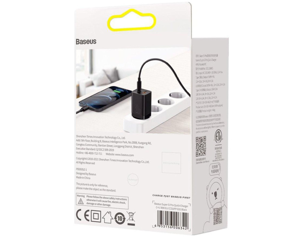| Зарядное устройство Baseus Super Si Pro Quick Charger C+U 30W black (CCSUPP-E01) воплощает новейшие технологии и бескомпромиссное качество, удовлетворяющие потребности самых требовательных пользователей. Этот адаптер с максимальной выходной мощностью 30 Вт обеспечивает молниеносную скорость зарядки благодаря поддержке технологий Power Delivery и Quick Charge 3.0. Это позволяет значительно сократить время ожидания, что незаменимо для активного ритма жизни. Благодаря двум выходным портам—USB Type-C и USB—зарядное устройство предлагает удобство подзарядки двух устройств одновременно. Независимо от того, заряжаете ли вы смартфон, планшет, смарт-часы, TWS наушники, фитнес-браслет, рацию, геймпад или экшн-камеру, это устройство готово обеспечить энергией в любой момент. Особое внимание уделено безопасности: регулировка выходного тока в пределах от 1.5 А до 3 А защищает ваши гаджеты от перенапряжения и перегрева. Элегантный черный цвет корпуса придаёт устройству современный вид, который удачно дополняет любой набор аксессуаров. Если вы цените надежность и инновационный подход, Baseus Super Si Pro станет вашим оптимальным выбором, превосходя современные стандарты. Гарантия на 12 месяцев подтверждает долговечность и бесперебойную работу, даря вам комфорт и уверенность в повседневной жизни. Это не просто зарядка — это особый подход к обеспечению качественного и эффективного питания ваших устройств. |