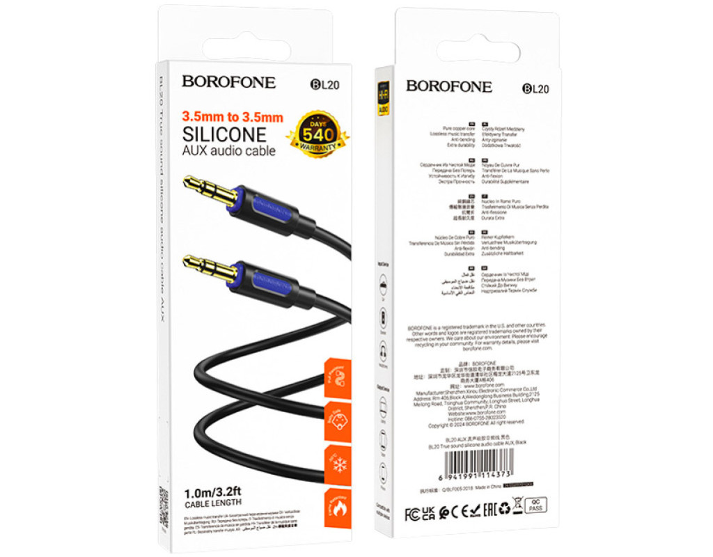 | Аудиокабель BOROFONE BL20 3.5 mm to 3.5 mm – это высококачественное решение для передачи аудиосигнала между любыми устройствами с разъемами 3.5 мм. С длиной 1 м и круглым сечением этот кабель создает идеальное сочетание комфортного использования и высокой производительности: он отлично подходит для повседневного использования, обеспечивая достаточный радиус действия без излишней путаницы и удобство транспортировки. Отличительной особенностью кабеля являются позолоченные коннекторы, устойчивые к коррозии, минимизируют потери сигнала, гарантируют надежное соединение и чистоту звука. Внешняя силиконовая оплетка не рвется, выдерживает многочисленные изгибы, отличается устойчивостью к высоким и низким температурам, является полностью безопасной для человека, повышает износостойкость кабеля и предотвращает запутывание провода, обеспечивая удобство хранения и использования. |