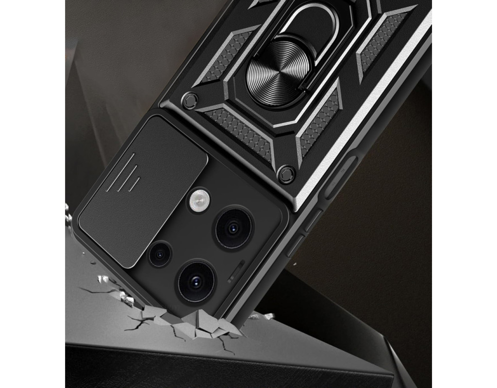 | "Протиударний чохол Military BeCover надійно захищений від будь-яких екстремальних та форс-мажорних ситуацій. Гнучка силіконова панель має жорсткий металізований корпус та кільце-підставку для пальця. Чохол здатний витримати навіть сильні удари та подряпини. Вбудований регульований кронштейн для кільця: кільце, що обертається на 360°, знімається або висувається як підставка, щоб звільнити руки. Це дозволить вам використовувати кільце як підставку для гаджета, використовуючи свій смартфон під час перегляду відео, роблячи фото або користуючись Інтернетом. Чохол приємний на дотик, має протиковзне покриття проти поту та відбитків пальців. М'який тонкий матеріал не пошкоджує мобільний телефон, він ударостійкий і піднятий, утворюючи борти, щоб захистити камеру та екран. Конструкція сумісна з магнітним тримачем (не включаючи магнітне автомобільне кріплення): у цьому випадку може надійно утримувати магнітне автомобільне кріплення та вільно обертатися (не сумісне з бездротовою зарядкою)." |