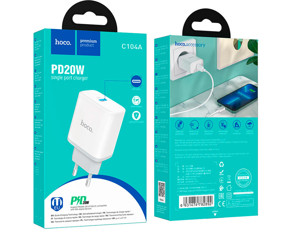 Сетевое зарядное устройство Hoco C104A Stage с EU-штекером оснащено портом Type-C для максимально эффективной зарядки ваших девайсов. Он совместим со многими современными устройствами: повербанками, смартфонами, планшетами, акустическими системами разных производителей. Максимальная выходная мощность адаптера составляет 20 Вт. Имеется поддержка протоколов быстрой зарядки PD20W, PPS, QC3.0, QC2.0, FCP, AFC. Корпус из ABS-пластика и PC не только придает стильный вид, но и обладает огнестойкими свойствами, что делает его безопасным в использовании. Компактный размер (85 х 45 х 27 мм) гарантирует, что зарядное устройство будет вашим надежным спутником в любом путешествии, обеспечивая быструю и эффективную зарядку ваших любимых гаджетов, где бы вы ни находились. Высококачественные материалы, многоуровневая система защиты и производственные стандарты, подтвержденные сертификатами RoHS, обеспечивают долговечность и надежность зарядного устройства. |