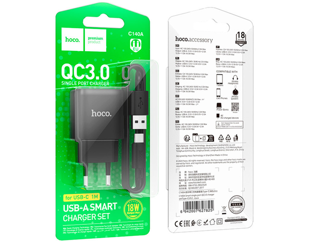 | Зарядное устройство HOCO C140A Smart USB QC3.0 в стильном черном цвете сочетает в себе высокое качество и передовые технологии, обеспечивая быструю и эффективную зарядку для вашей электроники. Его основные преимущества – это универсальность и производительность. Этот надежный адаптер, предназначенный для питания от сети, станет незаменимым инструментом для зарядки разнообразных гаджетов, включая смартфоны, планшеты, геймпады, TWS-наушники, смарт-часы, рации и экшн-камеры. Устройство оснащено одним USB портом, поддерживающим выходной ток до 3 А и максимальную выходную мощность в 18 Вт. Это позволяет значительно сократить время зарядки благодаря интеграции передовых технологий быстрой зарядки, таких как Quick Charge 3.0, Power Delivery 3.0 и PPS. Независимо от того, находитесь ли вы дома, в офисе или в пути, HOCO C140A всегда обеспечит вашу электронику необходимой энергией. Компактный дизайн делает это зарядное устройство легким и удобным для переноски, идеально подходящим для тех, кто часто путешествует. Изготовленное из высококачественных материалов, HOCO C140A гарантирует не только стильный вид, но и долговечность, выдерживающую даже самое интенсивное использование. В комплект также входит кабель USB-A to USB-C, обеспечивающий дополнительное удобство при подключении к современным гаджетам. Выбирайте HOCO C140A, чтобы наслаждаться свободой быстрой зарядки и уверенностью в надежности вашего зарядного устройства, когда это наиболее нужно. |