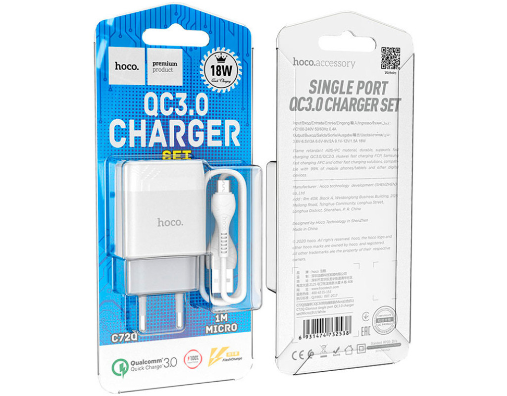 Конструкция с одним разъемом USB может облегчить повседневную жизнь, пополняя заряд различных гаджетов. Устройство способно быстро заряжать смартфоны и планшеты, ведь имеет мощность 18 W. Размер зарядного аппарата является максимально компактным, его легко можно взять с собой в путешествие или на работу. Устройство отвечает всем стандартам, поэтому имеет встроенную защиту от внезапного напряжения и замыканий. При изготовлении аппарата использовались специальные огнеупорные материалы: ABS-пластик и PC, делающие этот аксессуар максимально безопасным. Особенности: