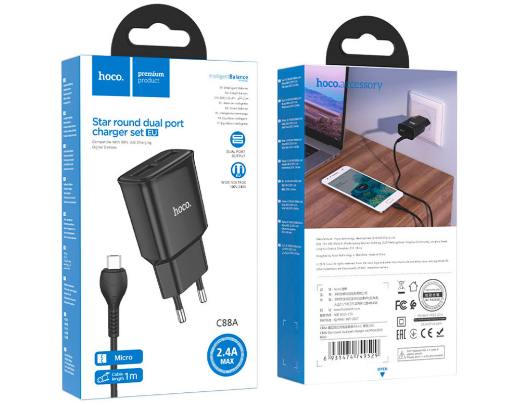 | Зарядное устройство HOCO C88A Star round 2xUSB + кабель Micro 12W Black — это оптимальный выбор для тех, кто ценит качество и функциональность в каждом элементе своих аксессуаров. Оно совместимо со многими гаджетами, такими как смартфоны, экшн-камеры, фитнес-браслеты, TWS наушники, геймпады, рации и смарт-часы. Благодаря двум USB портам, этот адаптер может одновременно заряжать несколько устройств, обеспечивая при этом максимальную выходную мощность в 12 Вт и ток 2.4 А, что гарантирует быструю зарядку. Корпус устройства изготовлен из огнеупорного пластика, благодаря чему зарядное устройство становится безопасным и долговечным выбором. Компактный дизайн позволяет легко носить его в сумке или рюкзаке, что делает его идеальным спутником в путешествиях или при повседневном использовании. Одной из особенностей является встроенная система защиты от скачков напряжения, перегрева и короткого замыкания. В комплект входит кабель USB-Micro, что делает зарядное устройство готовым к использованию сразу после приобретения. Выберите HOCO C88A для эффективной и безопасной зарядки любимых устройств. |