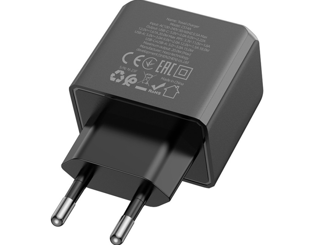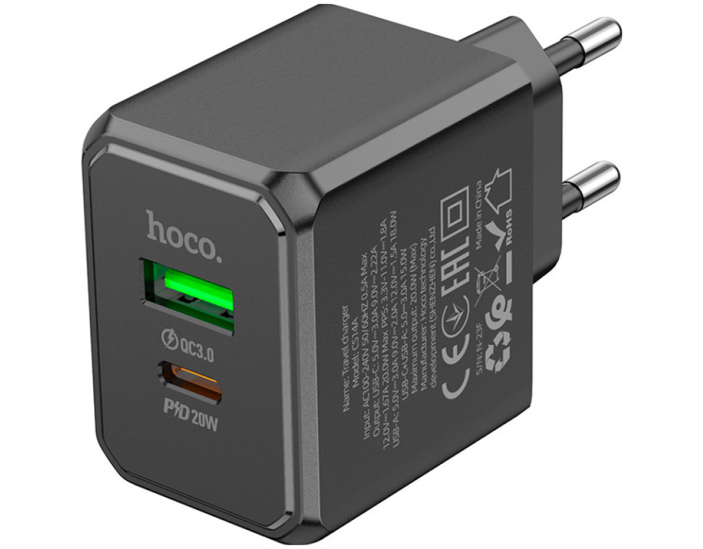 Зарядное устройство Hoco CS14A Ocean PD20W + QC3.0 charger Black – это зарядка для телефона, планшета и портативных устройств. Устройство обеспечит необходимую мощность энергии, поможет дольше сохранить работоспособность аккумулятора и зарядку за минимальное время. Если нужно, его можно использовать и для других гаджетов, главное – учитывайте совместимость разъемов и параметры энергии. С источником энергии точно не будет вопросов, мощность Hoco CS14A Ocean PD20W+QC3.0 charger Black составляет 20 Вт. Вместе с выходной силой тока это обеспечивает максимально эффективную зарядку устройства. Устройство Hoco CS14A Ocean PD20W + QC3.0 charger Black – это зарядка с 1 USB-A и 1 USB-C портами, подключить кабель и начать процесс заряда можно за несколько движений. |
