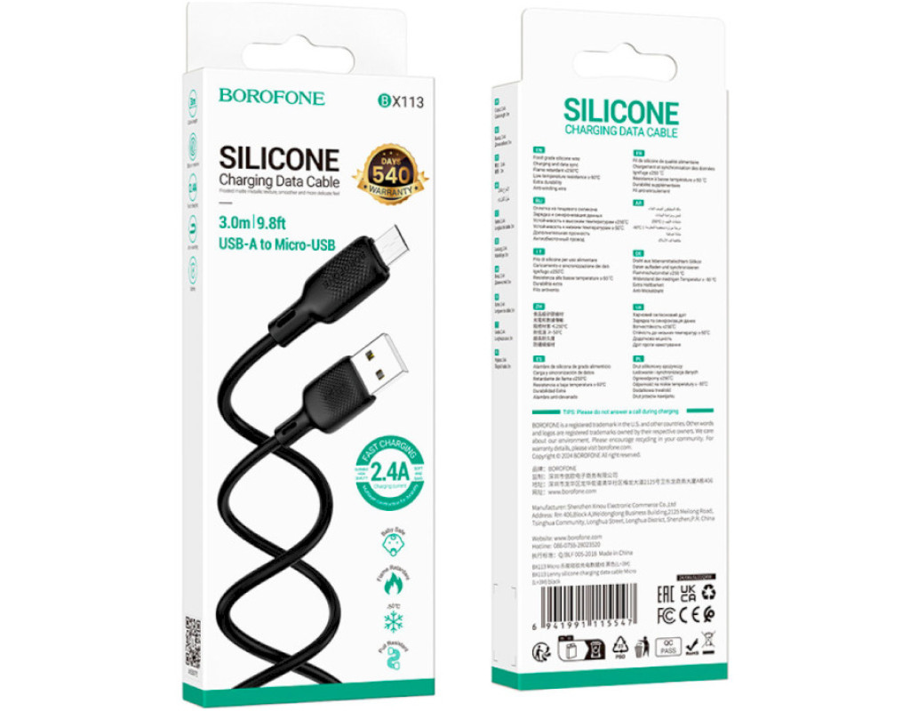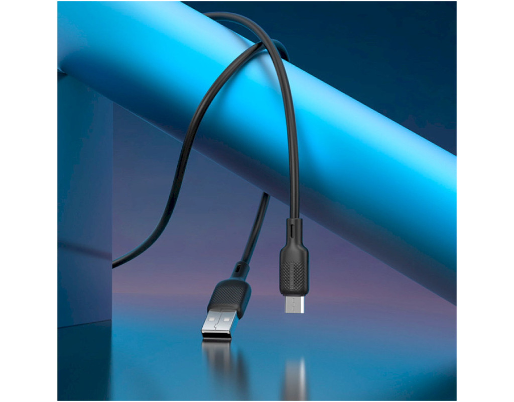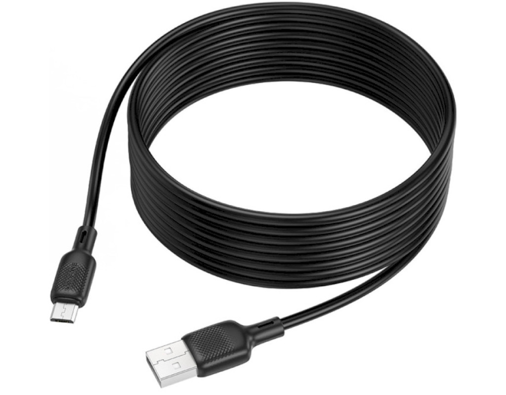 Дата кабель USB 2.0 AM to Micro 5P 3.0m Lenny silicone BX113 black BOROFONE (6941991115547)