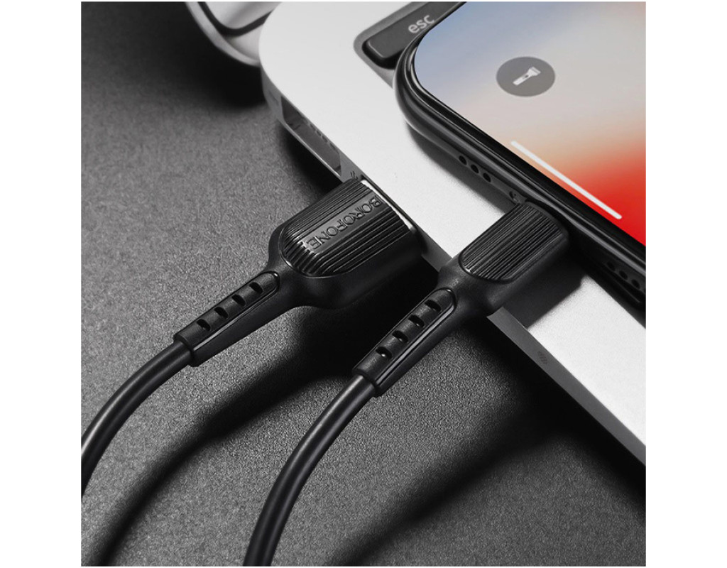 Дата кабель USB 2.0 AM to Lightning 1.0m 2A PVC BX16 black BOROFONE (6957531099512)