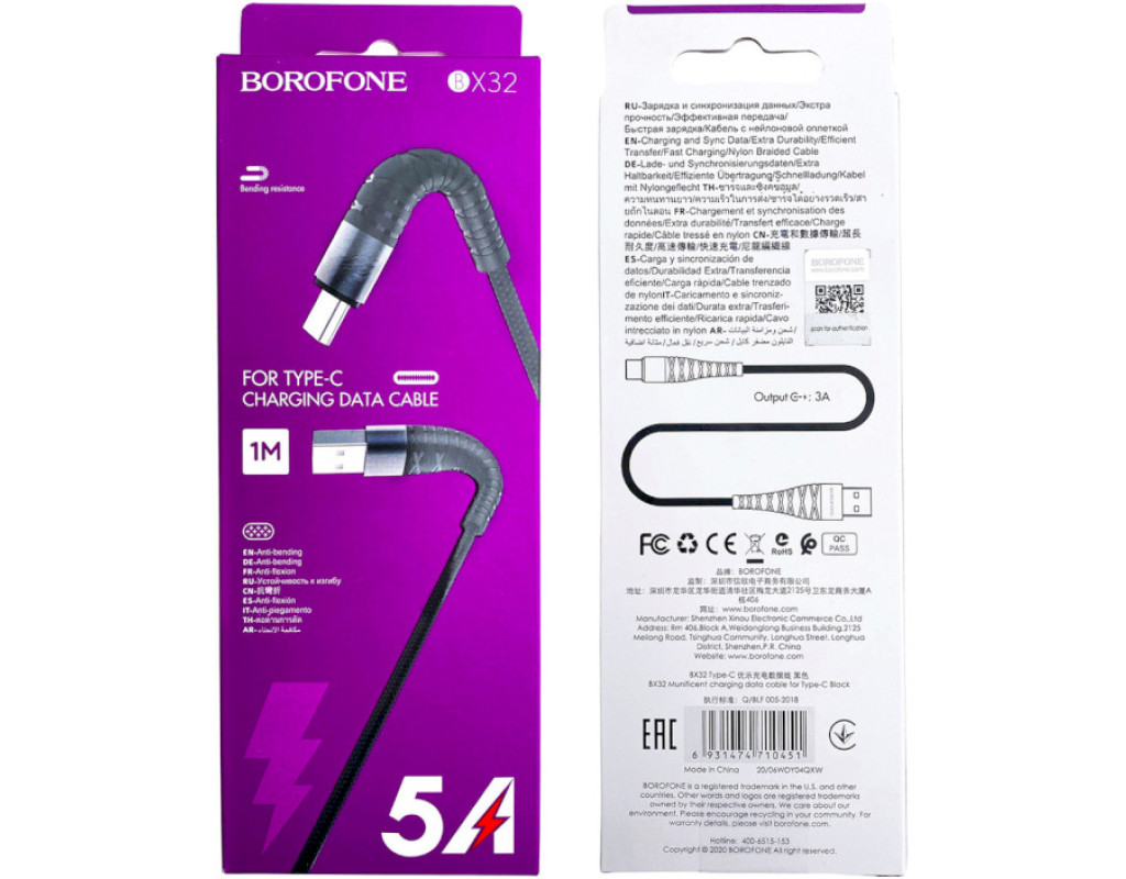 Дата кабель USB 2.0 AM to Lightning 1.0m 2.4A nylon BX32 black BOROFONE (6931474710413)