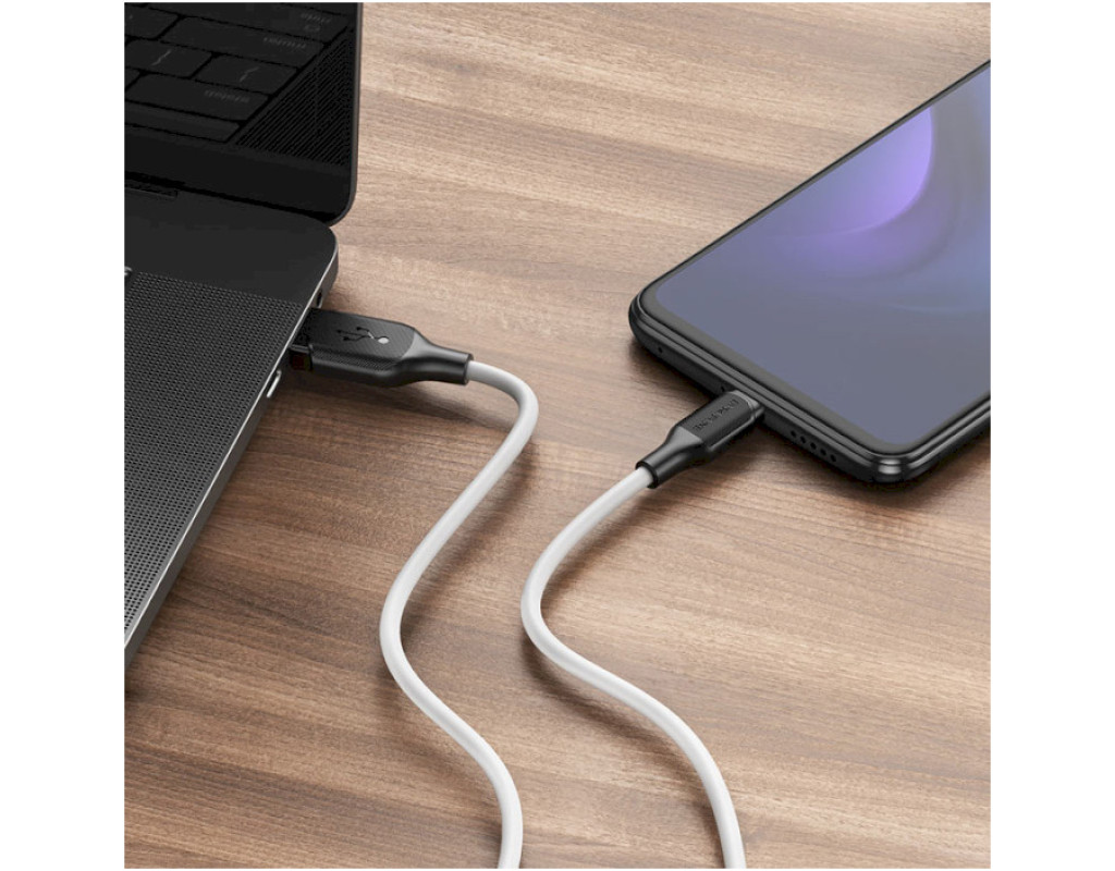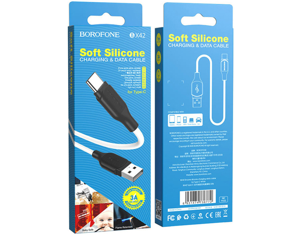 Дата кабель USB 2.0 AM to USB-C 1.0m 3A silicone BX42 white BOROFONE (6931474736772)