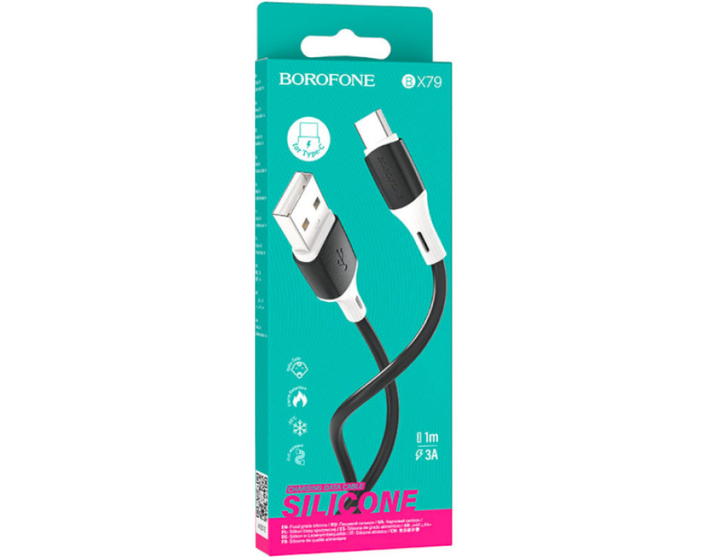 Дата кабель USB 2.0 AM to USB-C 1.0m 3A silicone BX79 black BOROFONE (6974443384789)