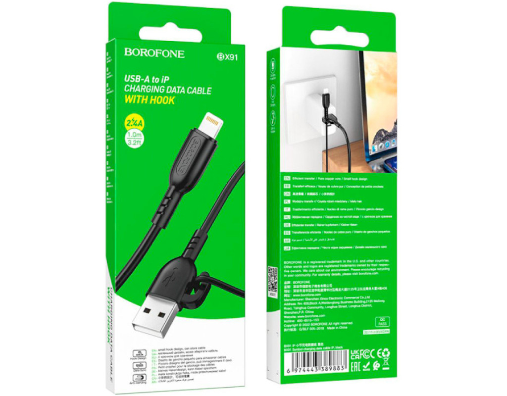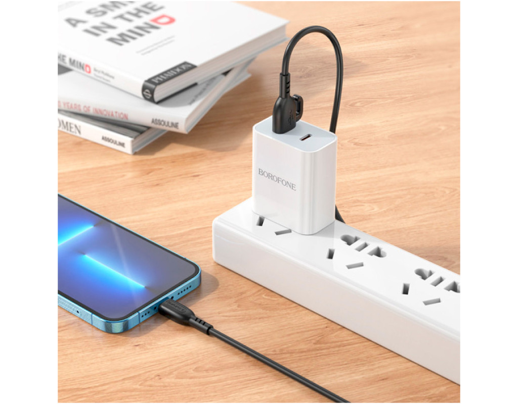 Дата кабель USB 2.0 AM to Lightning 1.0m 2.4A PVC BX91 black BOROFONE (6974443389883)