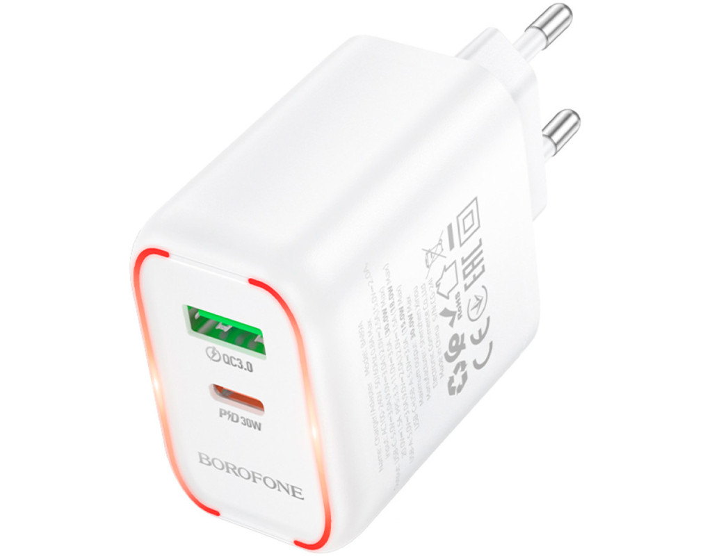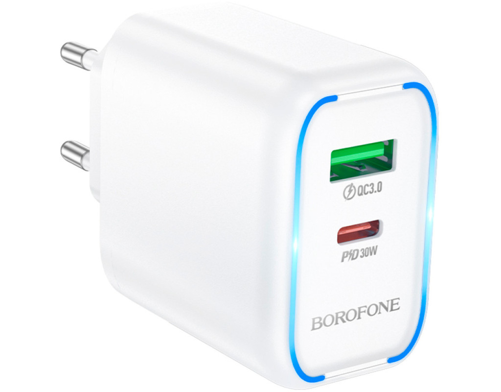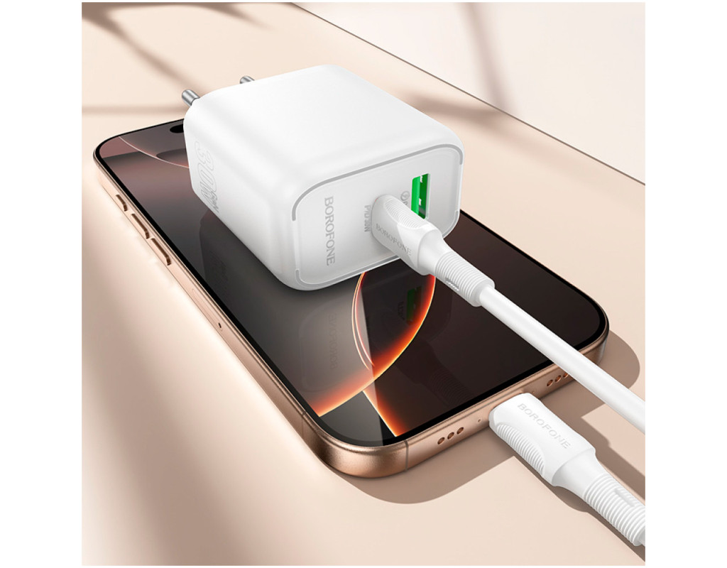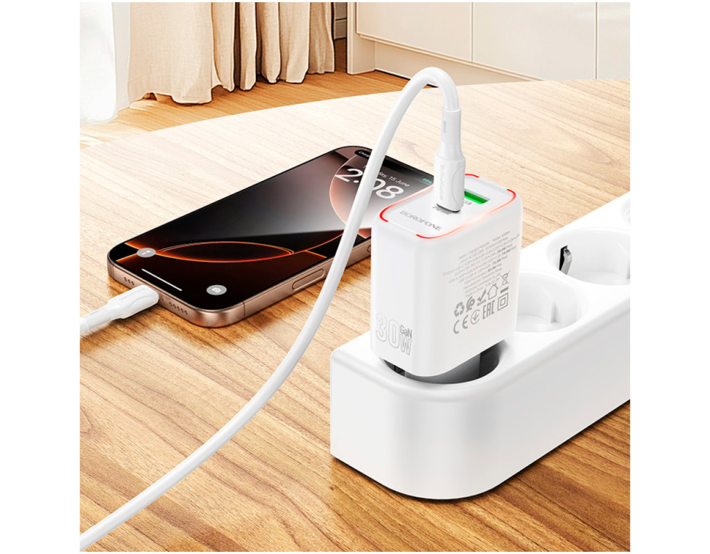 Сетевое зарядное устройство Borofone BA89A Destello PD30W + QC3.0 Charger (EU) White – это универсальное и мощное зарядное устройство с двумя портами: USB Type-C и USB-A. Он поддерживает технологии быстрой зарядки Power Delivery (PD) мощностью до 30 Вт и Quick Charge 3.0 (QC3.0), что позволяет быстро и безопасно заряжать всевозможные гаджеты. Особенности Поддержка PD 30W позволяет заряжать iPhone 8 и более новые модели до 50% всего за 30 минут. Подходит для смартфонов, планшетов, смарт-часов, наушников и других устройств с поддержкой PD. Легкий, удобен для транспортировки, идеально подходит для путешествий. Встроенная защита от перенапряжения, перегрева, перегрузки и короткого замыкания для сохранения ваших устройств. Borofone BA89A Destello PD30W + QC3.0 Charger (EU) White — это надежное и многофункциональное зарядное устройство, обеспечивающее быструю и безопасную зарядку ваших гаджетов. Преимущества Эффективная зарядка, экономящая время. Эргономичный дизайн, удобен для транспортировки. Надежность и безопасная работа благодаря встроенным системам защиты. Это устройство идеально подходит для быстрой зарядки современных гаджетов дома, в офисе или во время путешествий. Оптимально подходит для быстрой зарядки устройств Apple, Android и других гаджетов с поддержкой PD. Оптимален для зарядки устройств Apple, Samsung, Xiaomi, Huawei и других гаджетов с поддержкой PD или QC3.0. |