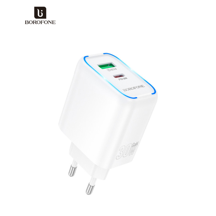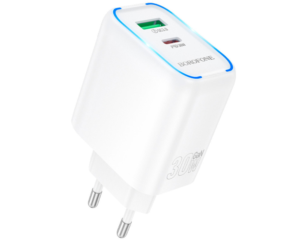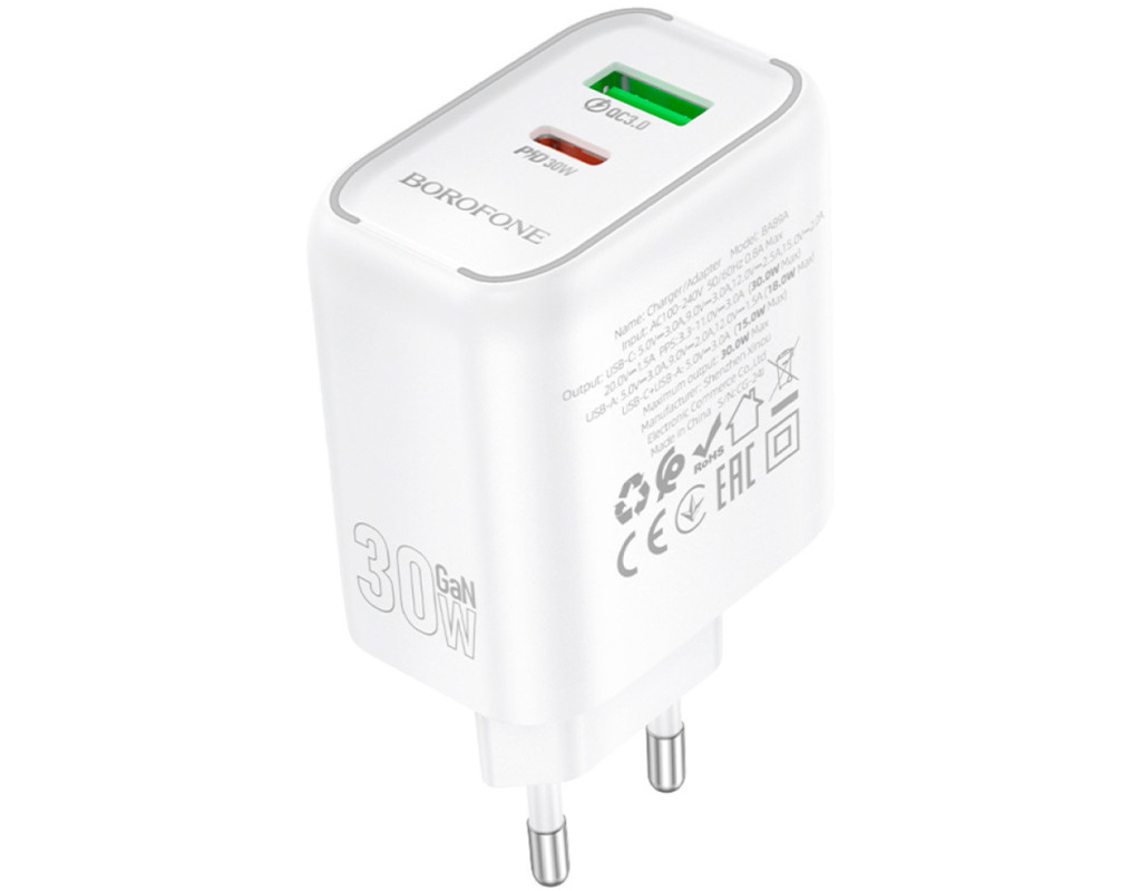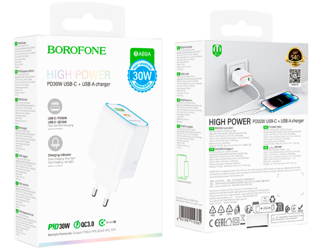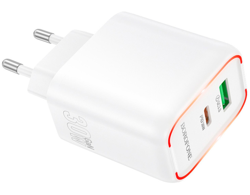 Сетевое зарядное устройство Borofone BA89A Destello PD30W + QC3.0 Charger (EU) White – это универсальное и мощное зарядное устройство с двумя портами: USB Type-C и USB-A. Он поддерживает технологии быстрой зарядки Power Delivery (PD) мощностью до 30 Вт и Quick Charge 3.0 (QC3.0), что позволяет быстро и безопасно заряжать всевозможные гаджеты. Особенности Поддержка PD 30W позволяет заряжать iPhone 8 и более новые модели до 50% всего за 30 минут. Подходит для смартфонов, планшетов, смарт-часов, наушников и других устройств с поддержкой PD. Легкий, удобен для транспортировки, идеально подходит для путешествий. Встроенная защита от перенапряжения, перегрева, перегрузки и короткого замыкания для сохранения ваших устройств. Borofone BA89A Destello PD30W + QC3.0 Charger (EU) White — это надежное и многофункциональное зарядное устройство, обеспечивающее быструю и безопасную зарядку ваших гаджетов. Преимущества Эффективная зарядка, экономящая время. Эргономичный дизайн, удобен для транспортировки. Надежность и безопасная работа благодаря встроенным системам защиты. Это устройство идеально подходит для быстрой зарядки современных гаджетов дома, в офисе или во время путешествий. Оптимально подходит для быстрой зарядки устройств Apple, Android и других гаджетов с поддержкой PD. Оптимален для зарядки устройств Apple, Samsung, Xiaomi, Huawei и других гаджетов с поддержкой PD или QC3.0. |