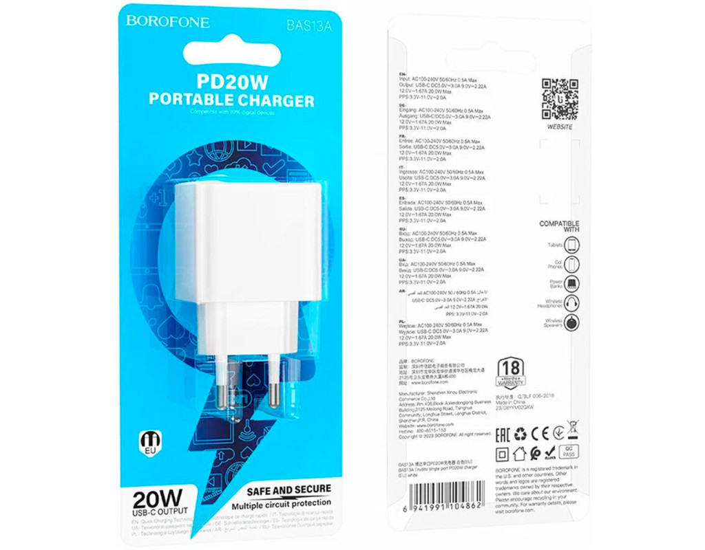 Сетевое зарядное устройство для Borofone BAS13A Erudite имеет порт Type-C для эффективной зарядки ваших девайсов. Он совместим со многими современными устройствами: повербанками, смартфонами, планшетами, наушниками, акустическими системами разных производителей. Максимальная выходная мощность адаптера составляет 20 Вт. Имеется поддержка протоколов быстрой зарядки PD20W, QC, FCP, AFC. Корпус изготовлен из качественного ABS-пластика. Компактный размер (77 х 45 х 32 мм) гарантирует, что зарядное устройство будет вашим надежным спутником в любом путешествии, обеспечивая быструю и эффективную зарядку ваших любимых гаджетов, где бы вы ни находились. Высококачественные материалы и производственные стандарты обеспечивают долговечность и надежность зарядного устройства. |